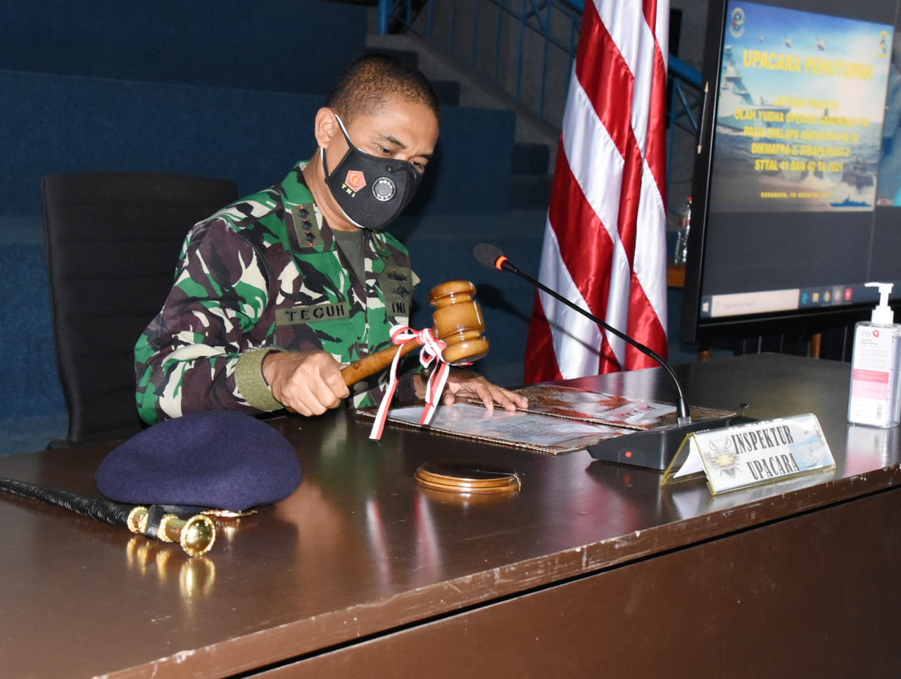 Saat ini pandemi Covid-19 belum ada tanda-tanda penurunan, akan tetapi pandemi tersebut bukan menjadi halangan bagi Perwira Siswa (Pasis) Pusat Pendidikan Lanjutan Perwira (Pusdiklapa) Komando Pendidikan Operasi Laut (Kodikopsla) Kodiklat TNI AL untuk menyelesaikan Latihan Praktek (Lattek) Ola Yudha Operasi Gabungan TNI. Adapun penutupan Lattek tersebut dilaksanakan di Gedung Tactical Floor Game (TFG) Pusat Opsla Kesatrian Kodiklatal Bumimoro Surabaya, Kamis, (5/8/2021).