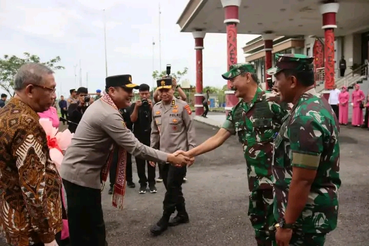 Saat menyalami Kapolda Kalbar yang baru, Pangdam XII/Tpr Mayjen TNI Sulaiman Agusto mengucapkan selamat datang di Bumi Khatulistiwa dan selamat bertugas kepada Kapolda Kalbar Irjen Pol Pipit Rismanto.