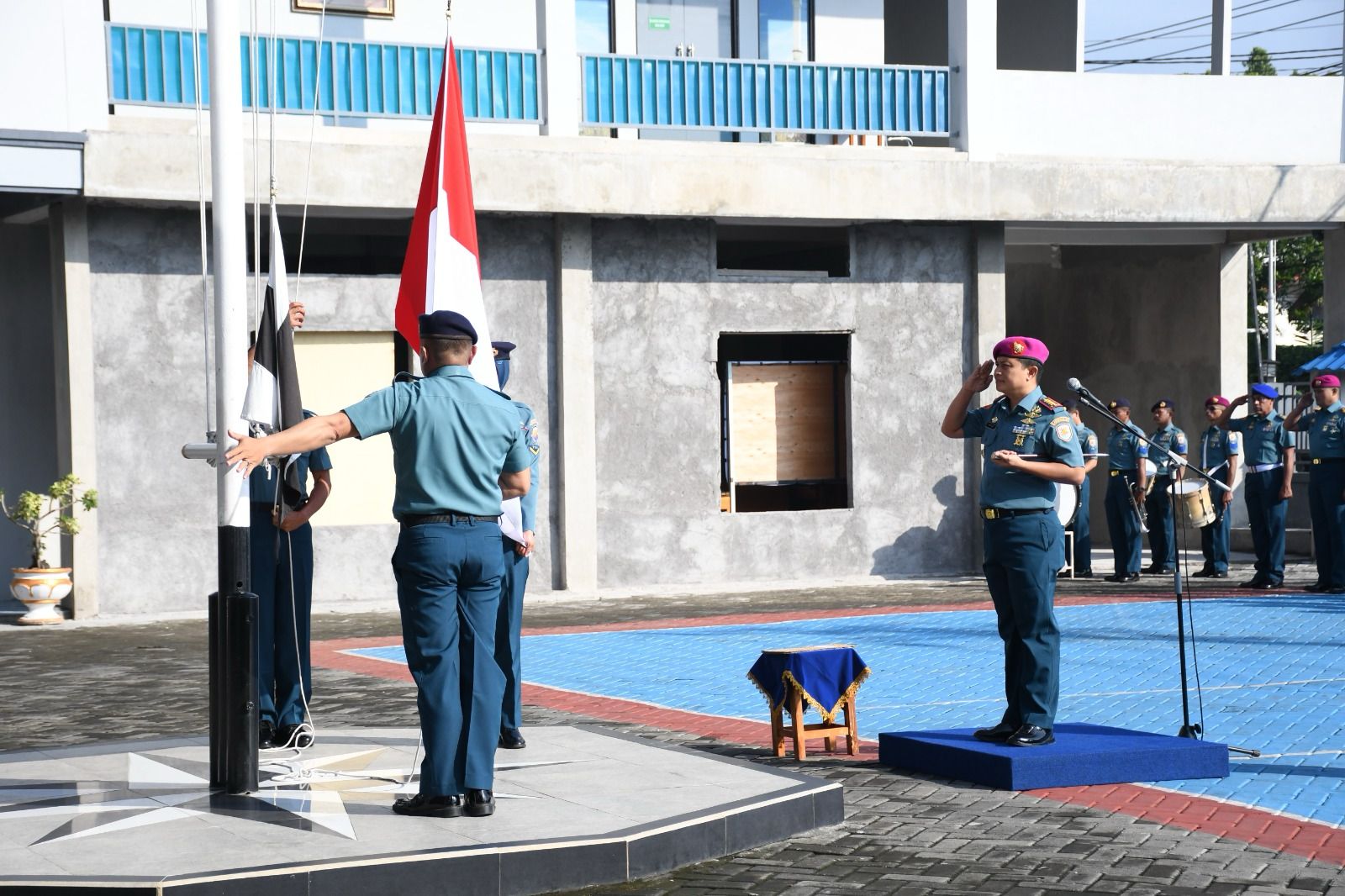 Pangkalan TNI AL Yogyakarta melaksanakan upacara bendera 17-an bertempat di Lapangan Apel Mako Lanal Yogyakarta. Senin 19 Mei 2025.