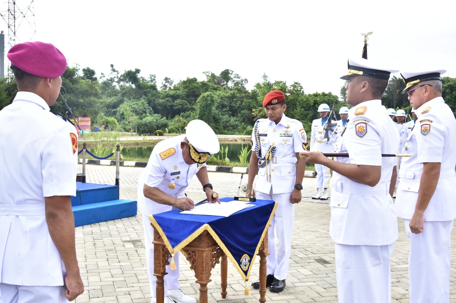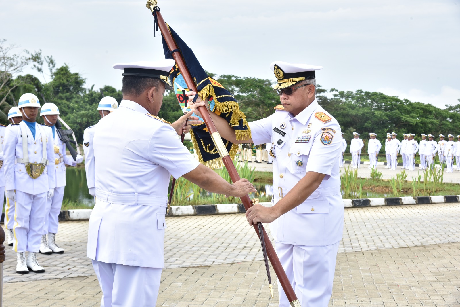 Panglima Komando Armada I Laksamana Muda TNI Dr. Yoos Suryono H., M.Tr.(Han)., M.Tr.Opsla. memimpin Upacara Serah Terima Jabatan (Sertijab) Komandan Pangkalan Utama TNI Angkatan Laut (Danlantamal) XII di Lapangan Upacara Mako Lantamal XII, Jl. Wajok Hilir km. 17 Kabupaten Mempawah Kalimantan Barat, Selasa (23/04/2024).