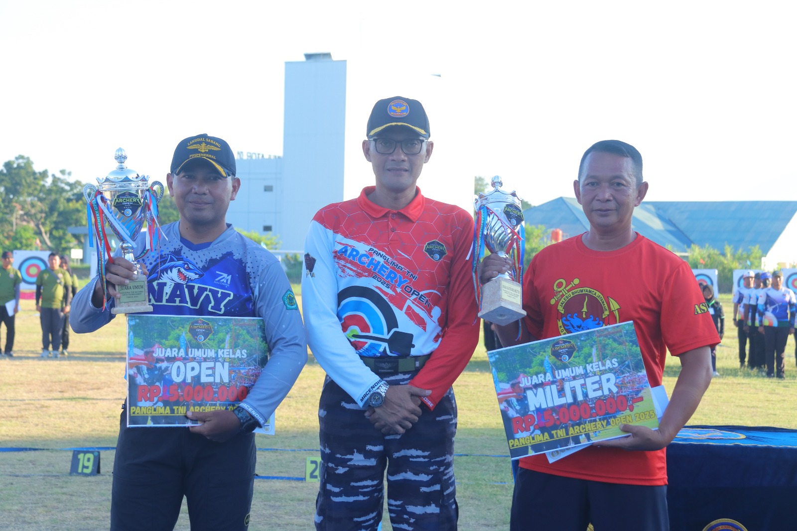Setelah sepekan berlangsung lancar dan sukses, Tournamen Panglima TNI Archery Open 2025 dalam rangka HUT ke-80 TNl resmi berakhir, Tim Panahan TNI AL berhasil meraih Juara Umum Kelas Open yang berlangsung di Lapangan Dakota, Pangkalan Udara TNl Angkatan Laut Juanda, Puspenerbal, Sidoarjo pada Senin (22/9/2025).