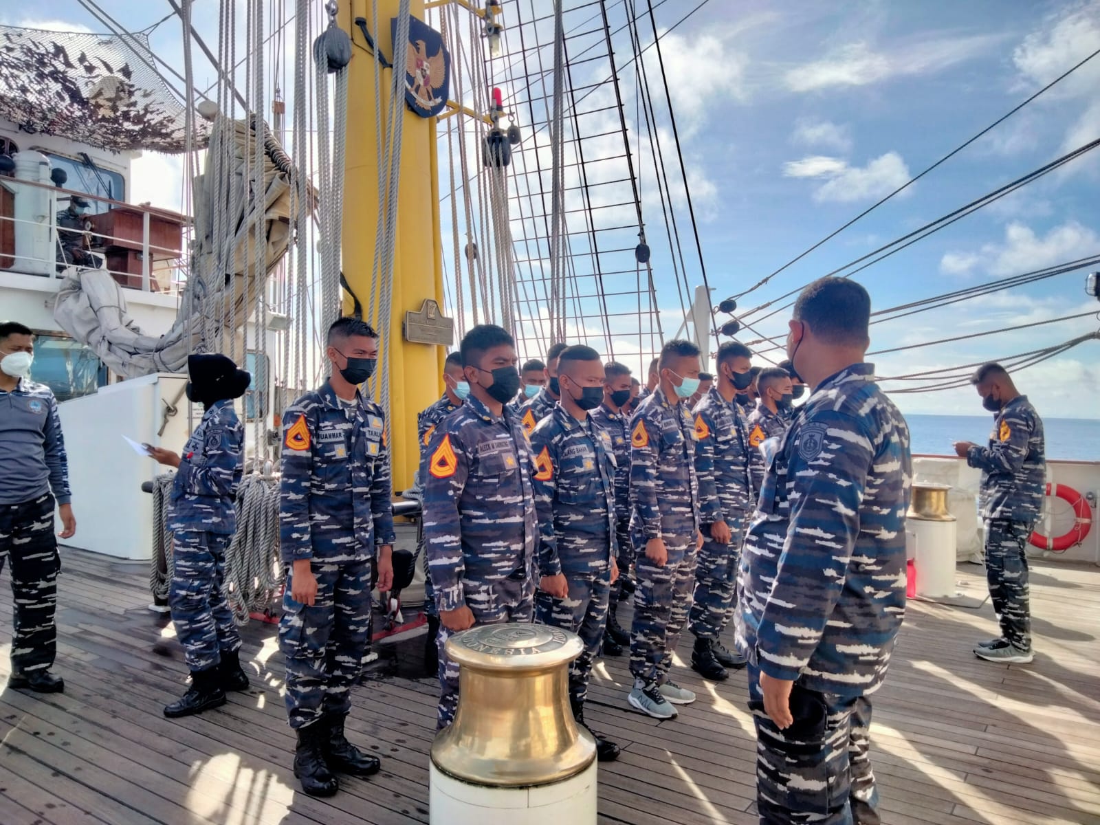 Pasca 5 hari Lego jangkar di perairan Waisa, Raja Ampat, Papua Barat, 89 Taruna Akademi TNI Angkatan Laut (AAL) Tingkat lll Angkatan ke-68 yang tergabung dalam Satuan Latihan Kartika Jala Krida (Satlat KJK) 2021 bersama KRI Bima Suci melanjutkan pelayaran keliling Indonesia Etape ke-5 menuju Morotai, Maluku Utara, Minggu (5/9).