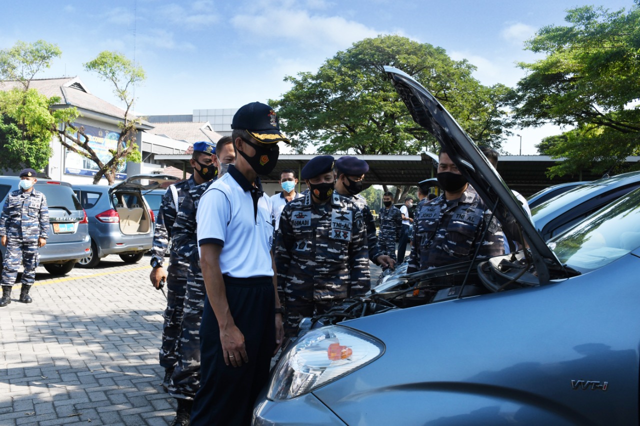 Wakil Komandan Sekolah Tinggi Teknologi Angkatan Laut (STTAL), Kolonel Laut (E) Maulana, S.T., M.Si., selesai apel pagi melaksanakan pemeriksaan dan pengecekan Kendaraan Dinas (Randis) di lingkungan Kampus STTAL Jl. Bumimoro Morokrembangan Surabaya. Jumat (23/04/2021).