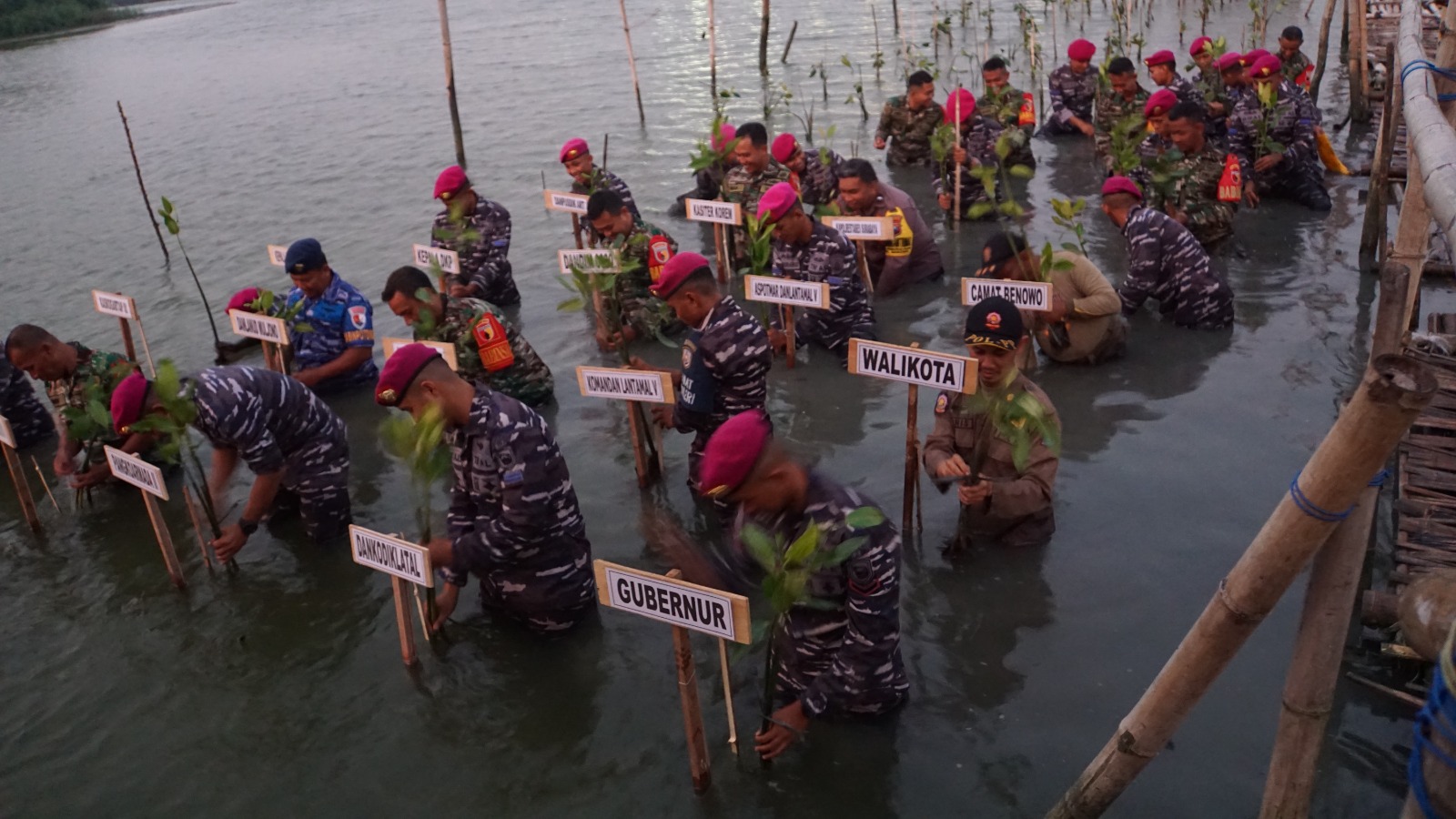 Presiden RI melalui teleconference menyampaikan bahwa, kegiatan ini dilaksanakan secara serentak sekaligus menjadi momen puncak dalam kegiatan penanaman mangrove yang dilakukan oleh jajaran TNI di 37 Provinsi dan 370 titik penanaman dengan total penanaman kurang lebih sekitar satu juta seratus ribu bibit pohon mangrove.