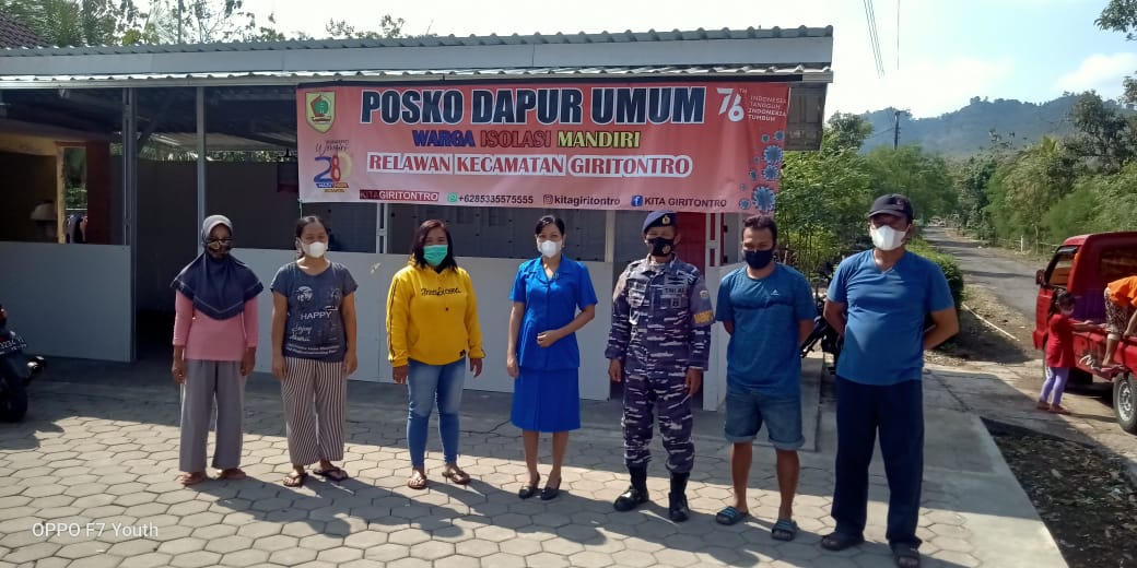Dalam rangka turut mengatasi dampak pandemi Covid-19, salah satu Prajurit Pangkalan TNI AL Yogyakarta, Kopka Ttg Sunarno NRP 78038, Bintara Pembina Potensi Maritim (Babinpotmar) Posal Sadeng Gunung Kidul, atas inisiatif dan usulan kepada Camat Giritontro Bapak Fredy Sasono, rela tempat tinggalnya dijadikan sebagai Posko Dapur Umum untuk warga yang sedang menjalani Isolasi Mandiri di RT 01/RW 05 lingkungan Tanggung, Kelurahan Giritontro, Kec. Giritontro Kab. Wonogiri, Jawa Tengah, Senin, (19/07/21).