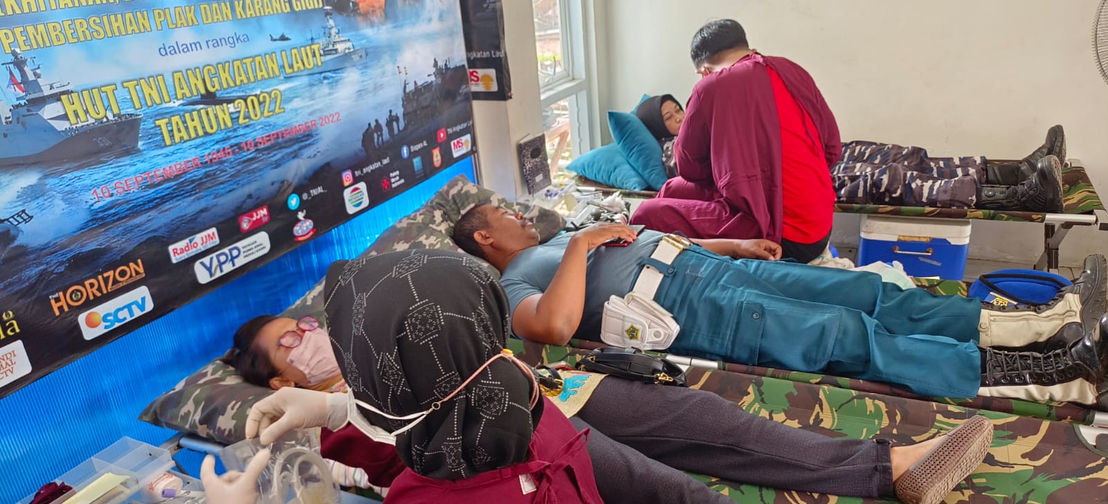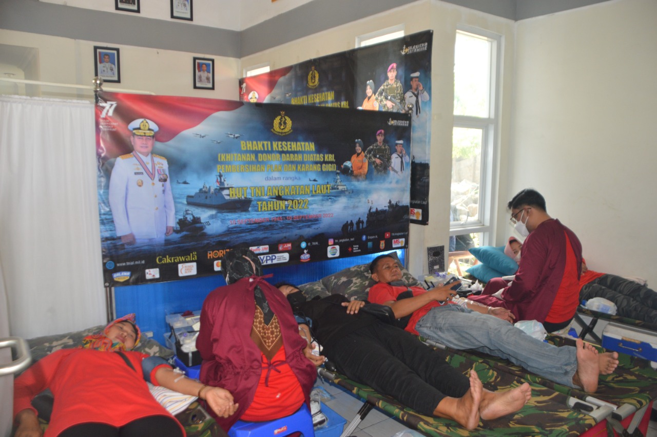 Komandan Pangkalan TNI Angkatan Laut (Danlanal) Semarang Kolonel Marinir Hariyono Masturi, M.Tr.Hanla., M.M., menggelar Bhakti Sosial Donor Darah dalam rangka memperingati Hari Ulang Tahun (HUT) TNI Ke-77 yang di gelar di Pos TNI AL Tambak Lorok Kelurahan Tanjung Emas Kota Semarang. Jum’at (7/10/2022).
