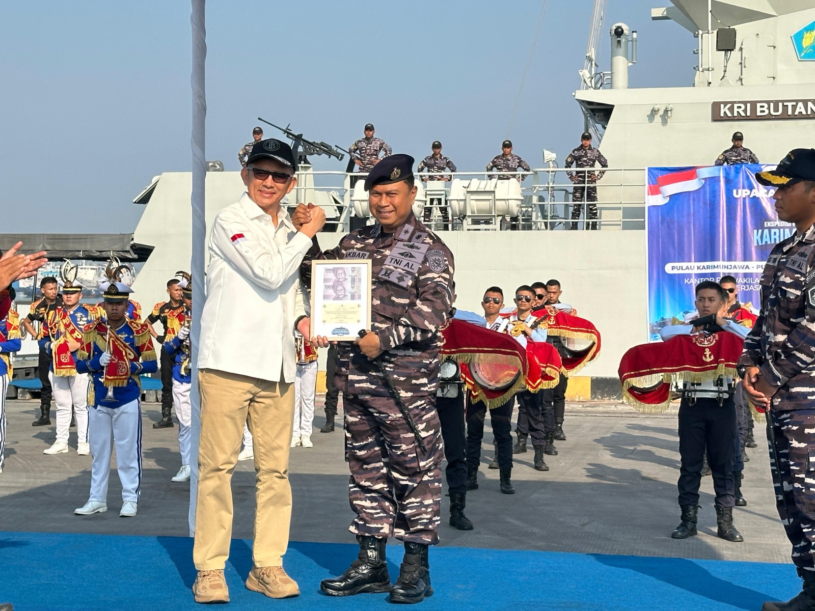 Dalam acara pelepasan Ekspedisi Rupiah Karimunjawa 2025 di Dermaga Samudera 2 Pelabuhan Tanjung Emas Semarang, Kepala Perwakilan Bank Indonesia Prov. Jateng Bapak Rahmat Dwi Saputra, memimpin acara tersebut yang dihadiri oleh Sekda Provinsi Jawa Tengah Bapak Sumarno, Komandan Lanal Semarang Kolonel Laut (P) Akbar Abdullah, M.Tr.Opsla dan Komandan KRI Butana-878, Mayor Laut (P) Mega Yudha Prabowo.