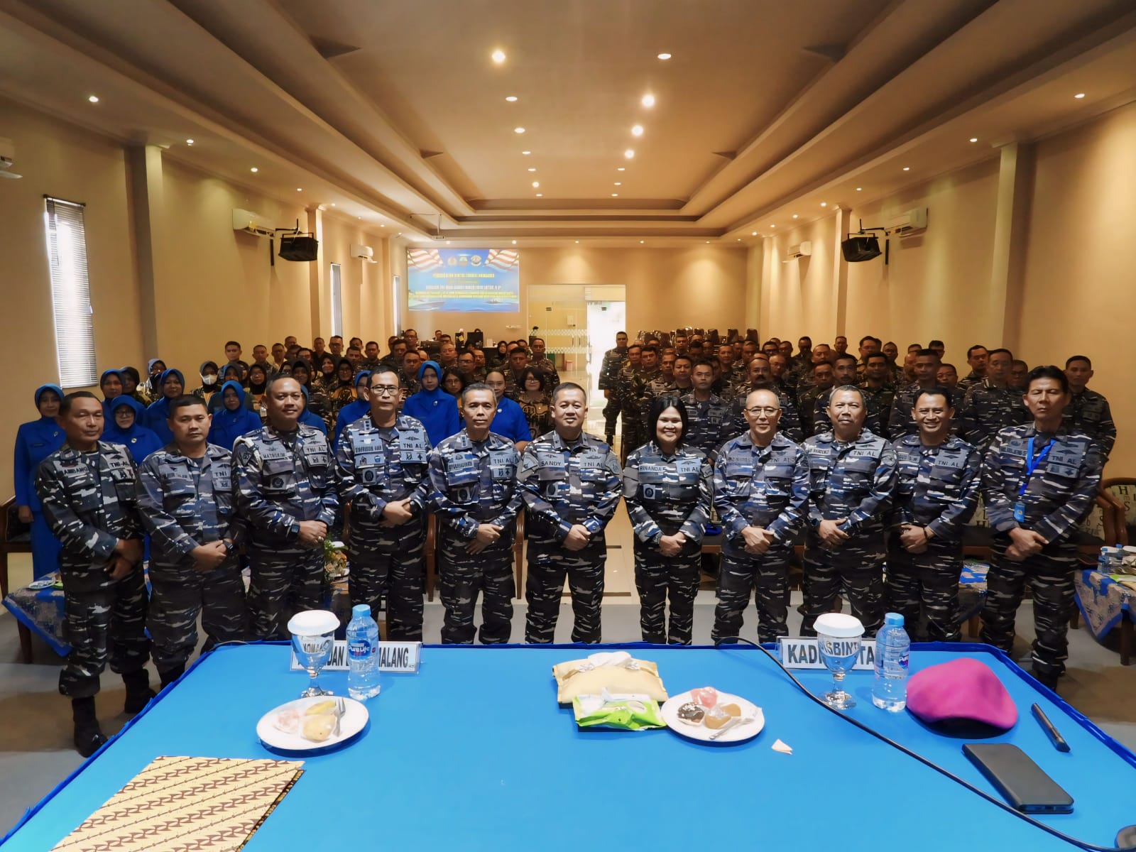 Komandan Pangkalan TNI AL Malang Kolonel Laut (KH/W) Rinanda Sintasari., S.Sos., M.,Tr.A.P., menghadiri kegiatan Pembekalan Fungsi Komando oleh Disbintalal di Gd. Graha Samodera Mako Lanal Malang, Jumat (03/05).