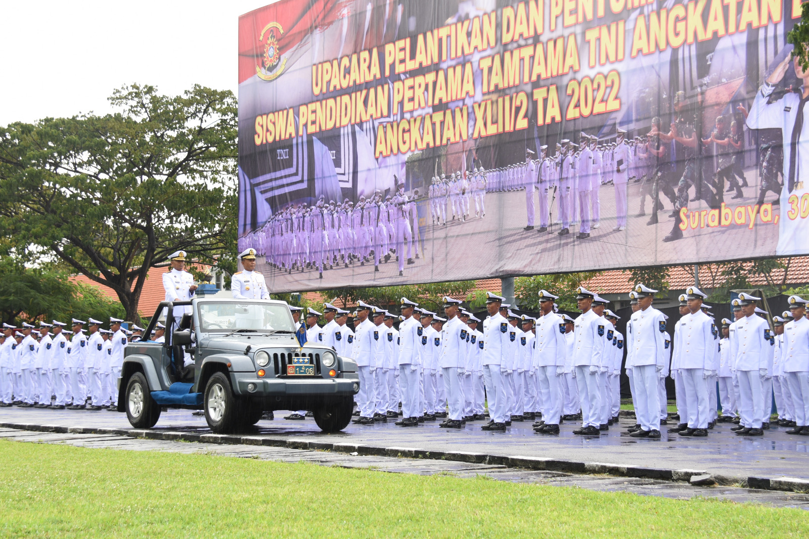 Komandan Kodiklatal Letnan Jenderal TNI Marinir Suhartono secara resmi melantik dan mengambil sumpah 936 siswa Pendidikan Pertama Tamtama (Dikmata) TNI AL Angkatan XLII Gelombang 2 TA 2022, dalam upacara militer yang digelar di Lapangan Laut Maluku Kodiklatal, Bumimoro Surabaya. Kamis (30/03/2023).