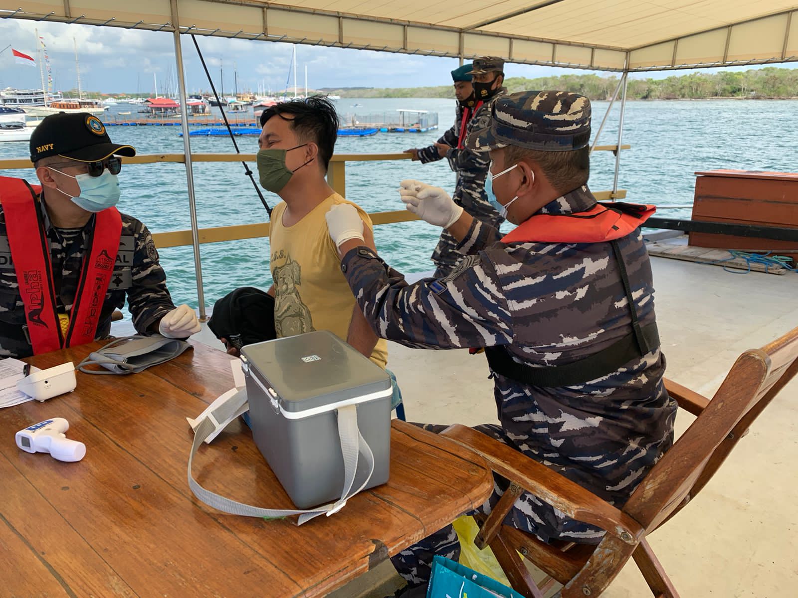 Untuk pelaksanaan vaksin setiap nelayan terlebih dahulu diperiksa kesehatannya, dan bagi nelayan yang memenuhi syarat kondisi kesehatannya, maka tenaga kesehatan melaksanakan vaksinasi di dalam kapal nelayan tersebut.