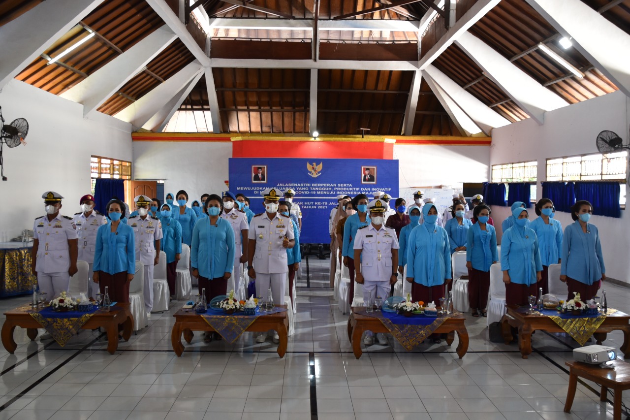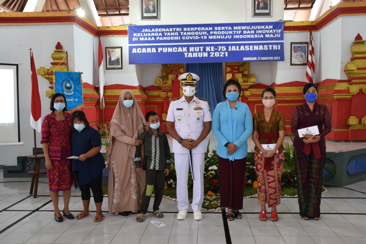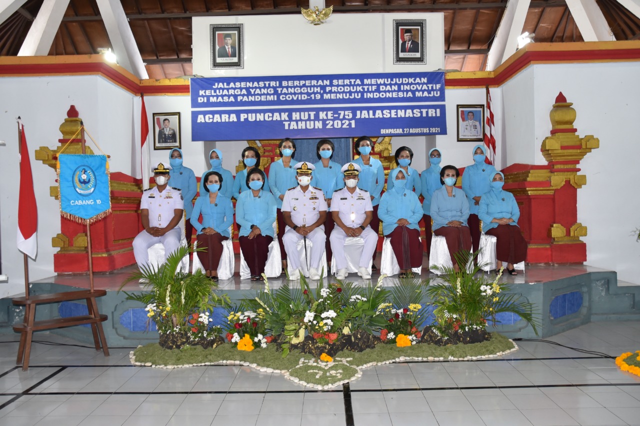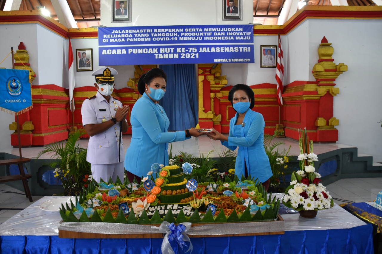 Jalasenastri Cabang 10 Korcab V Daerah Jalasenastri Armada (DJA) II memperingati acara Puncak HUT ke 75 Jalasenastri yang jatuh pada tanggal 27 Agustus 2021 dan syukuran berlangsung di Gedung Serba Guna IGP. Dwinda Mako Pangkalan TNI AL (Lanal) Denpasar Jalan Raya Sesetan 331 Denpasar Bali. Jumat (27/8).