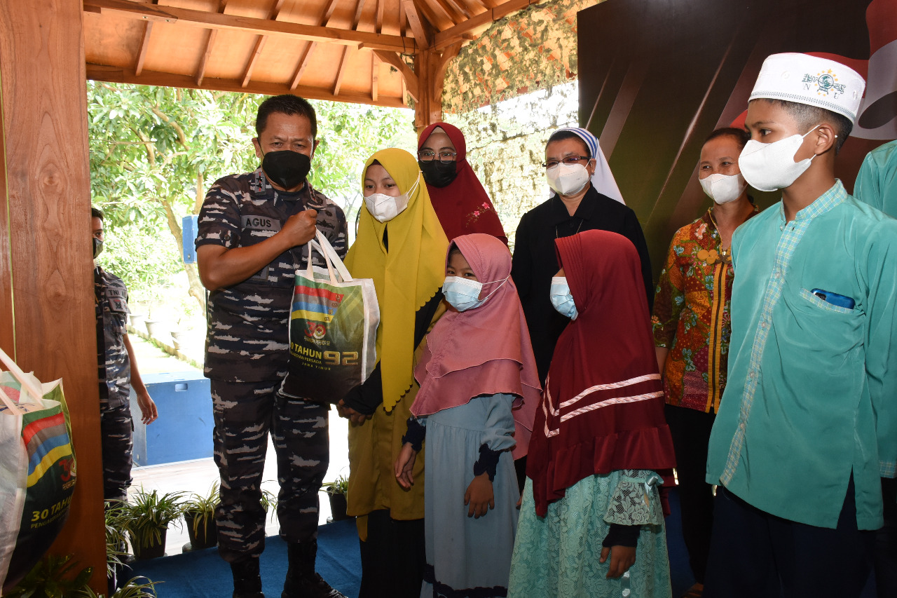 Bantuan sosial berupa sembako yang diangkut menggunakan kendaraan dinas TNI ini dikirim langsung ke tempat Panti asuhan dan Panti Jompo antara lain, Bakti Luhur Tropodo Waru, yayasan Ar Rahman Sedati dan Pesantren Al. Muttaqin. Sebelum bantuan diberangkatkan ke tempat tujuan dilaksanakan penyerahan secara simbolis oleh Laksda TNI Agus Hariadi kepada perwakilan dari pengurus panti asuhan, yayasan dan pondok pesantren.