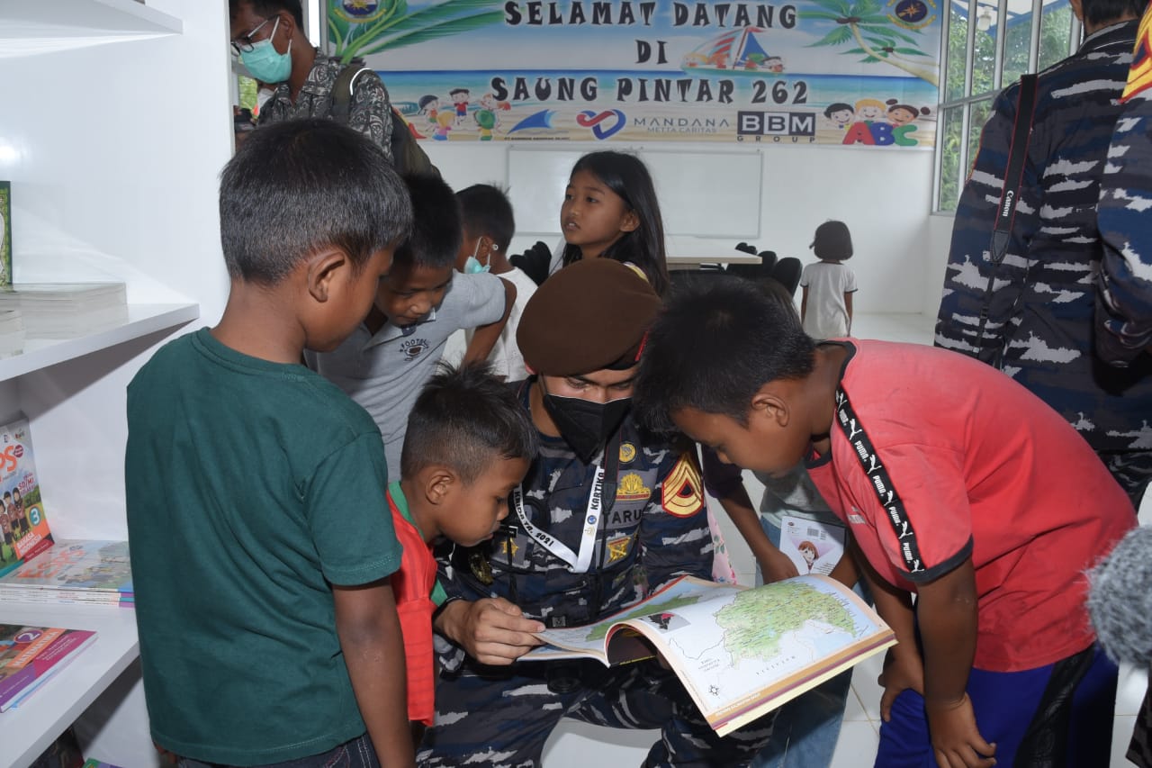 Keberadaan Rumah Saung Pintar 262 untuk anak-anak pesisir yang berada di garda terdepan pulau terluar Indonesia ini, diresmikan Komandan Gugus Tempur Laut (Guspurla 1), Laksma TNI Dato Rusman S.N., S.E., M.Si.