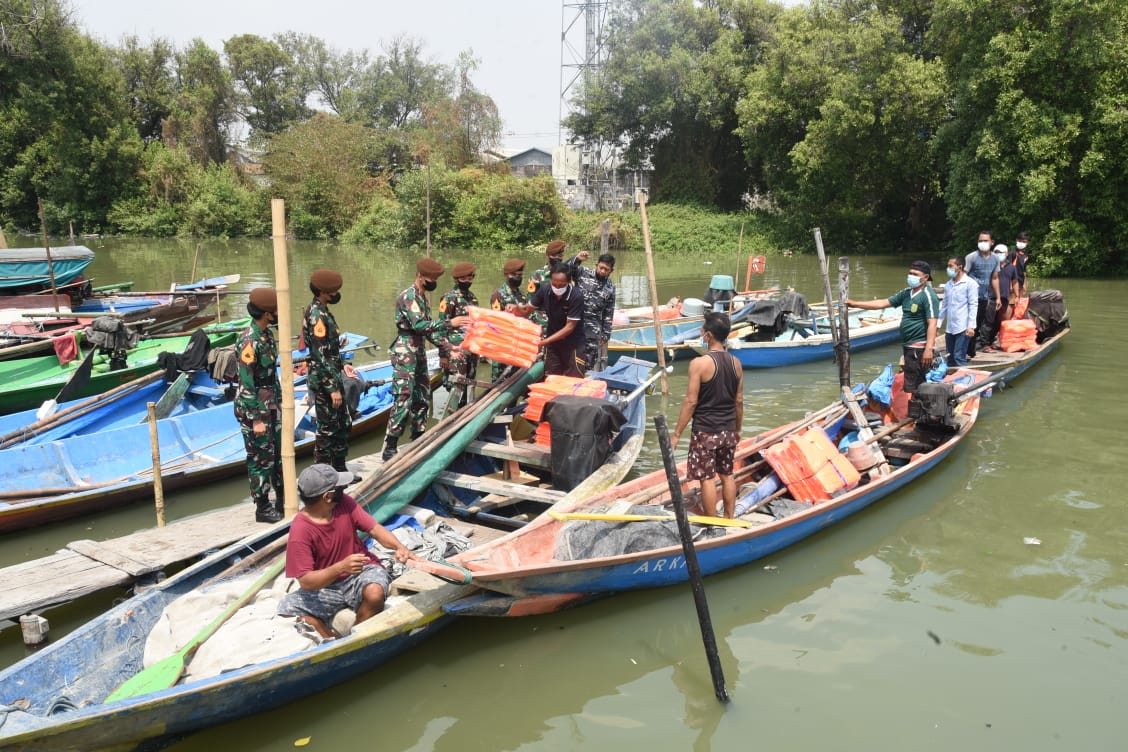 Usai pembersihan, perwakilan Taruna AAL yang turut dalam Program Kali Bersih, juga menyerahkan bantuan life jaket kepada masyarakat kampung nelayan Morokrembangan.