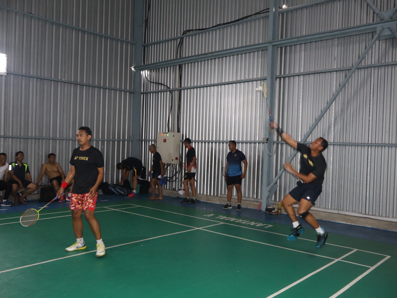 Turut hadir pertandingan persahabatan, Kadisminpers Lantamal V Letkol Laut (P) Moh. Hanif, A. Md., M. Tr. Opsla., dan tim Bulu Tangkis dari Pasmar 2.