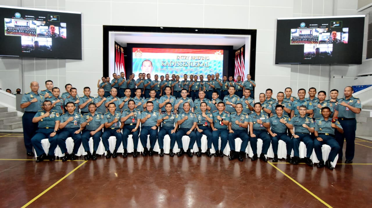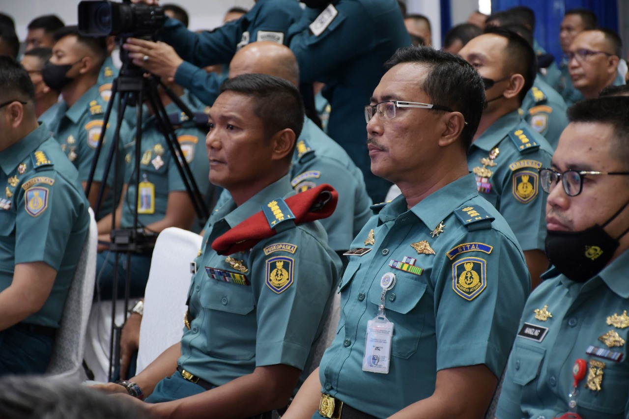 Kabagkerma STTAL Letkol Laut (E) Suprayitno, S.Si., M.MT., Letkol Laut (E) Erpan Sahiri, S.T., M.T., M.Tr.Hanla., beserta 4 (empat) orang Perwira Korps Elektronika STTAL menerima Pembekalan Kadisenlekal, Laksma TNI Teguh Prasetyo, S.T.,M.Soc.Sc., saat Entry Briefing dihadapan para Perwira Korps Elektronika, bertempat di gedung PTA Koarmada II Ujung Surabaya pada hari Rabu, 22 Juni 2022,