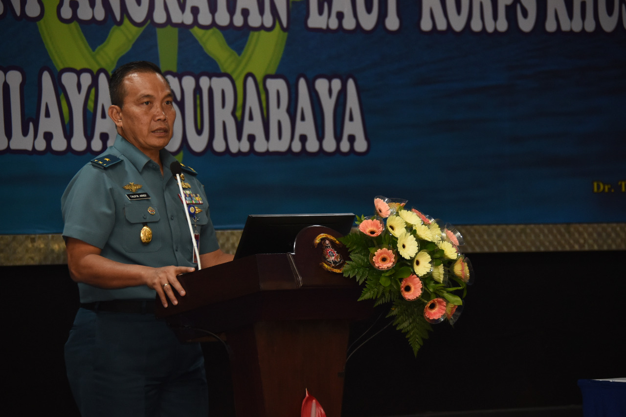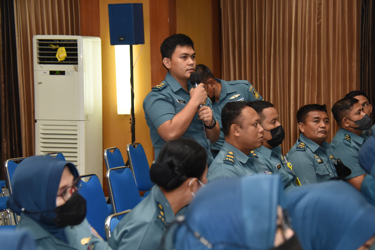 Perwira korps Khusus (KH) dari beberapa kotama TNI AL wilayah Surabaya mendapat pembekalan dalam acara tatap muka dengan Kepala Dinas Penelitian Pengembangan TNI AL (Kadislitbangal) Laksma TNI Taufik Arief. Tatap muka digelar di Gedung Mulyadi, Ksatrian Kodiklatal Bumimoro Surabaya pada Rabu (22/06/2022).