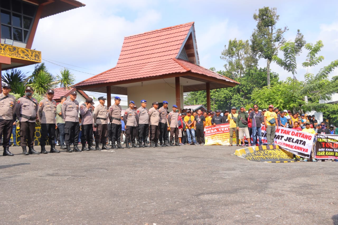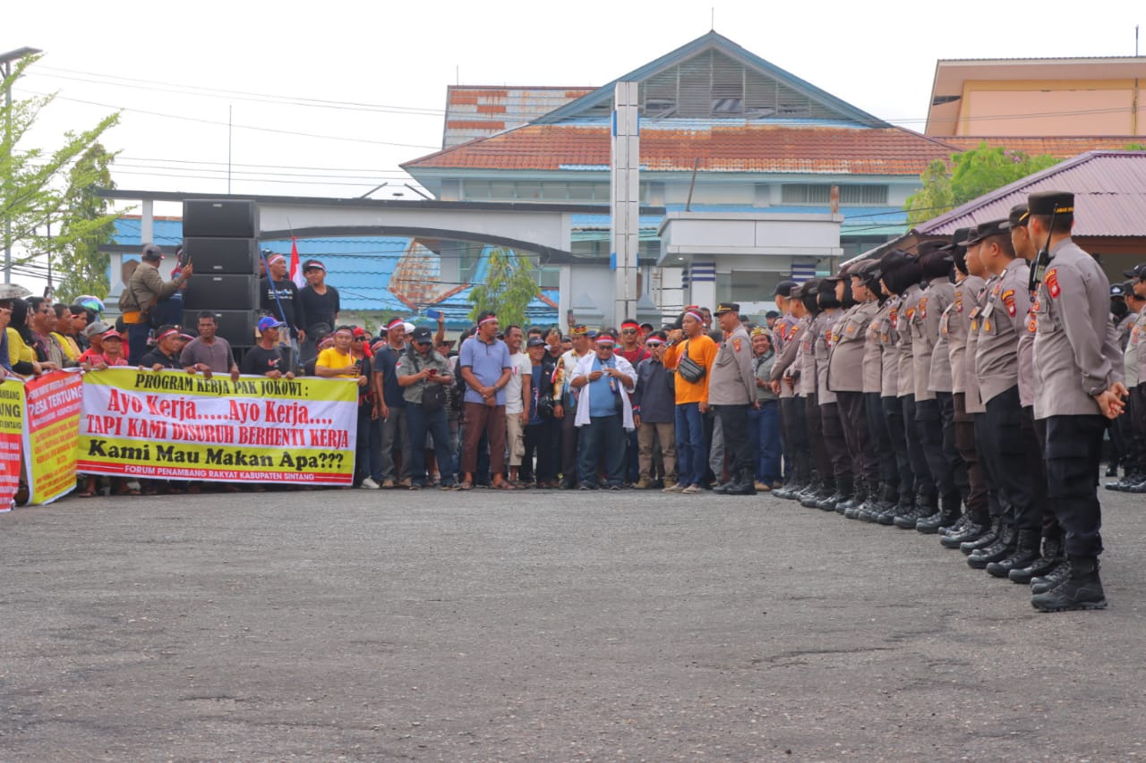 Ratusan personel Kepolisian dikerahkan dalam pengamanan aksi damai masyarakat di Kantor Bupati Sintang pagi ini, Rabu (31/5).