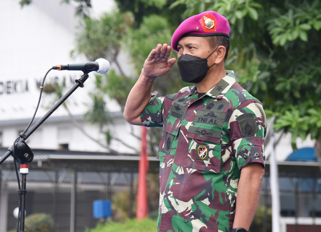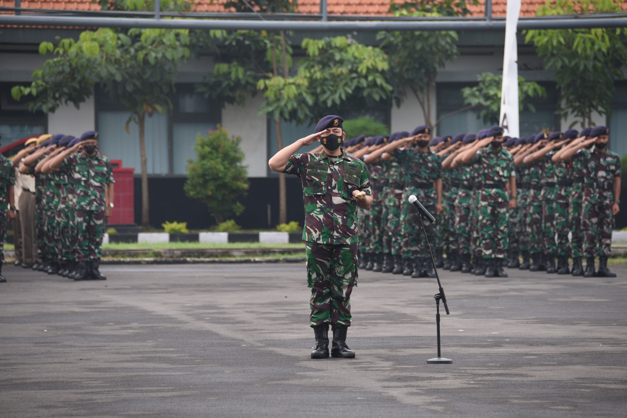 Ratusan Prajurit dan Pegawai Negeri Sipil (PNS) Komando Pembinaan Doktrin Pendidikan dan Latihan TNI AL (Kodiklatal) menggelar apel Gabungan terakhir di Bulan Januari 2022, apel Gabungan yang dipimpin langsung Direktur Latihan (Dirlat) Kodiklatal Brigjen TNI (Mar) Widodo tersebut dilaksanakan di Lapangan Laut Maluku Kesatrian Kodiklatal Bumimoro Surabaya, Senin, (31/1/2022).