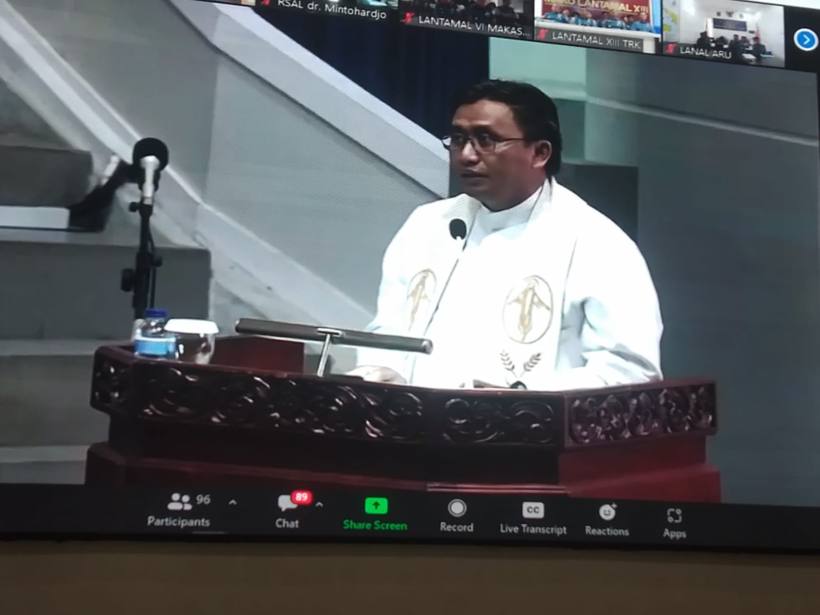 Segenap prajurit dan para siswa beragama Kristen Protestan dan Katolik yang sedang menempuh pendidikan di pusdik-pusdik jajaran Komando Pembinaan Doktrin Pendidikan dan Latihan TNI Angkatan Laut (Kodiklatal), mengikuti perayaan Paskah Gabungan TNI AL Tahun 2023 melalui sarana video conference yang dilaksanakan di Gedung JOPR Mako Kodiklatal Bumimoro Surabaya, pada Rabu (24/5/2023).