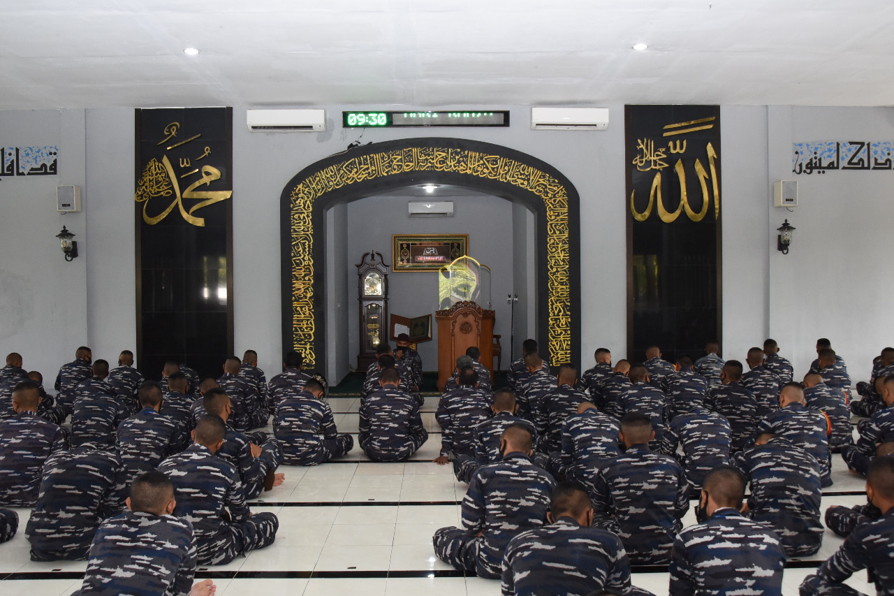 Prajurit dan Taruna Akademi Angkatan Laut (AAL) menggelar doa bersama mengenang 40 hari gugurnya 53 Awak KRI Nanggala-402 yang dilaksanakan di Mesjid Nurul Bahri, Kesatrian AAL Bumimoro, Surabaya, Kamis (3/6).