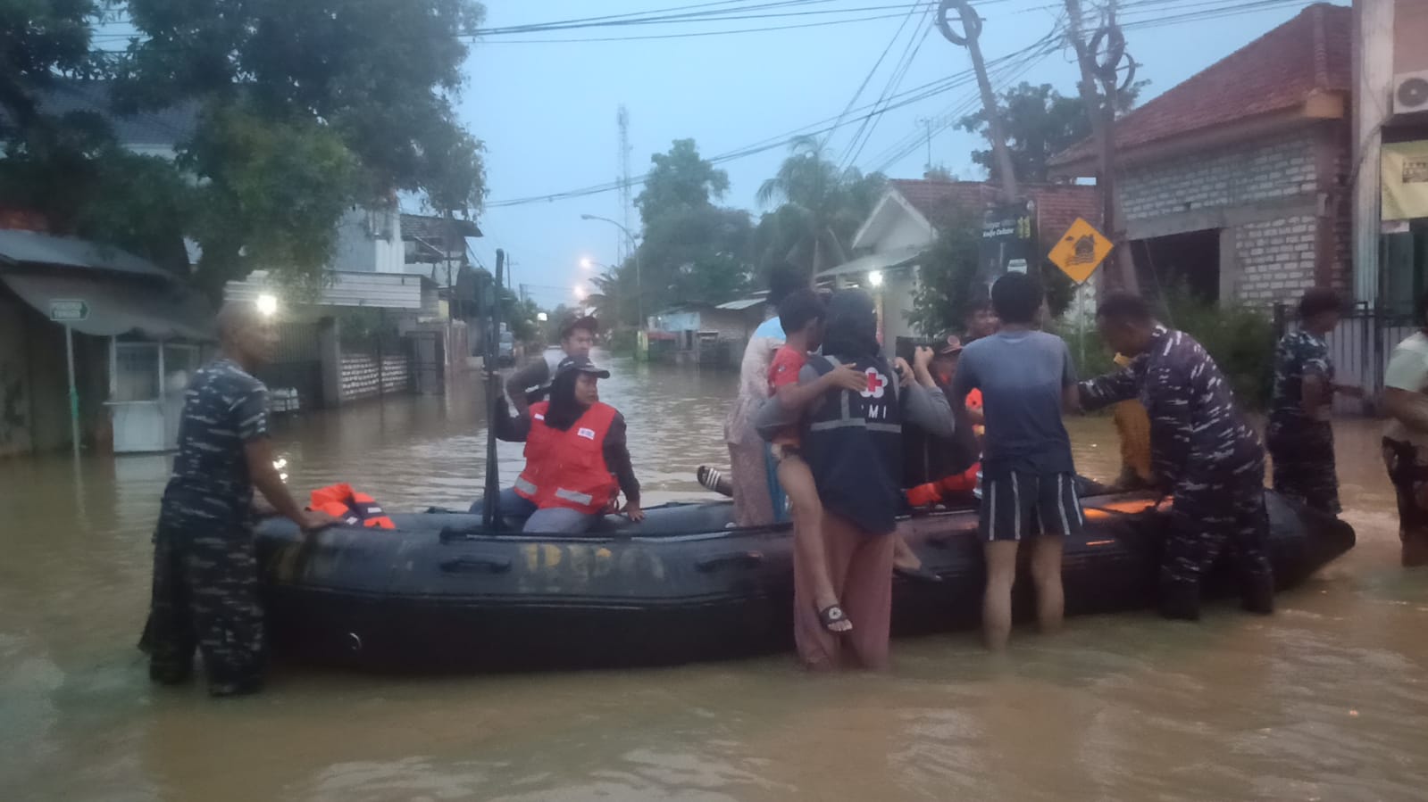 Para prajurit mengutamakan orang orang tua usia lanjut, balita dan anak-anak untuk menjadi prisoritas sedangkan untuk yang lainnya menunggu giliran untuk proses evakuasi, selesai buka puasa para prajurit Lanal Batuporon melanjutkan tugasnya guna menyelamatkan warga yang masih terjebak banjir.