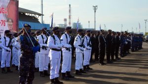 Komandan Pangkalan TNI Angkatan Laut Semarang Kolonel Mar Hariyono Masturi, M. Tr. Hanla., M.M., yang diwakili Perwira Pelaksana (Palaksa) Letkol Laut (KH) Yudhi Hermawan, S.P., menghadiri upacara Tabur Bunga dalam rangka Hari Bhayangkara ke-76 Tahun 2022, bertempat di dermaga Nusantara Pelabuhan Tanjung Emas Semarang. Rabu (29/6/2022)