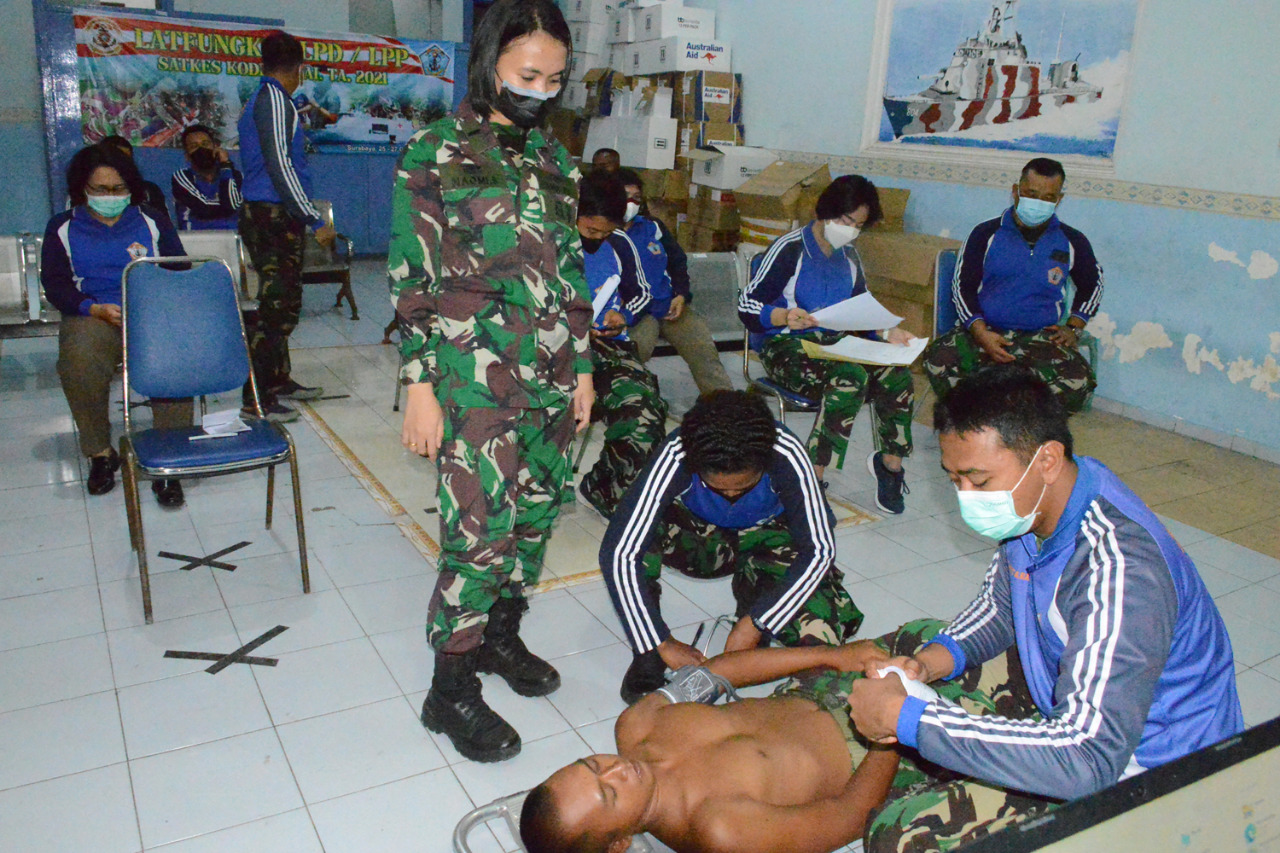 Dalam rangka merefres kembali tentang tugas dan tanggung jawab profesi Kesehatan, sebanyak 20 prajurit Korps Kesehatan yang berdinas di Satuan Kesehatan (Satkes) Komando Pembinaan Doktrin, Pendidikan dan Latihan TNI AL (Kodiklatal) melaksanakan LDD Latihan Fungsi Kesehatan (Latfungkes) TNI AL TA 2021 yang digelar di Aula Satkes Kodiklatal Bumimoro Surabaya, Senin, (25/10/2021).