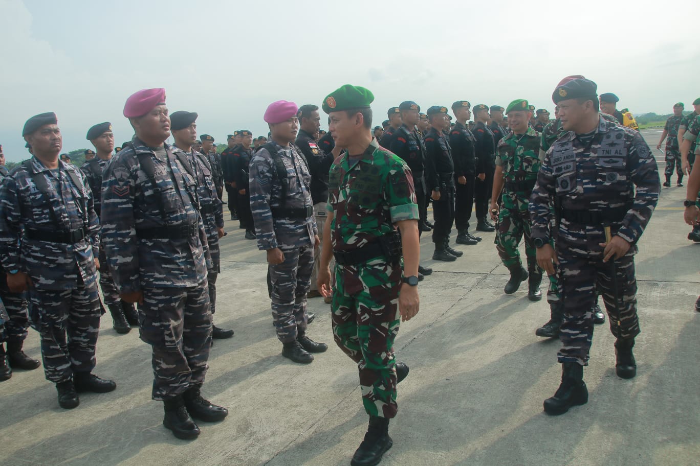 Usai pelaksanaan Apel Gelar Pasukan Kesiapan Pemilu 2024 dilakukan pengecekan pasukan serta alutsista seperti kendaraan motor dinas, mobil ambulance, mobil Patwal Pom Militer, mobil Damkar, serta truck angkut pasukan.