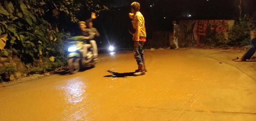 Miris, dampak dari proyek galian pemasangan pipa PDAM menyebabkan menjadi Licin dan membahayakan pengguna jalan.Sekitar pukul 22.00 wib hari Rabu,07 April 2021,pengguna jalan kurang lebih 10 pengendara motor berjatuhan saat melintasi jalan tersebut dan beruntung tidak ada korban jiwa dari tragedi jalan licin tersebut.
