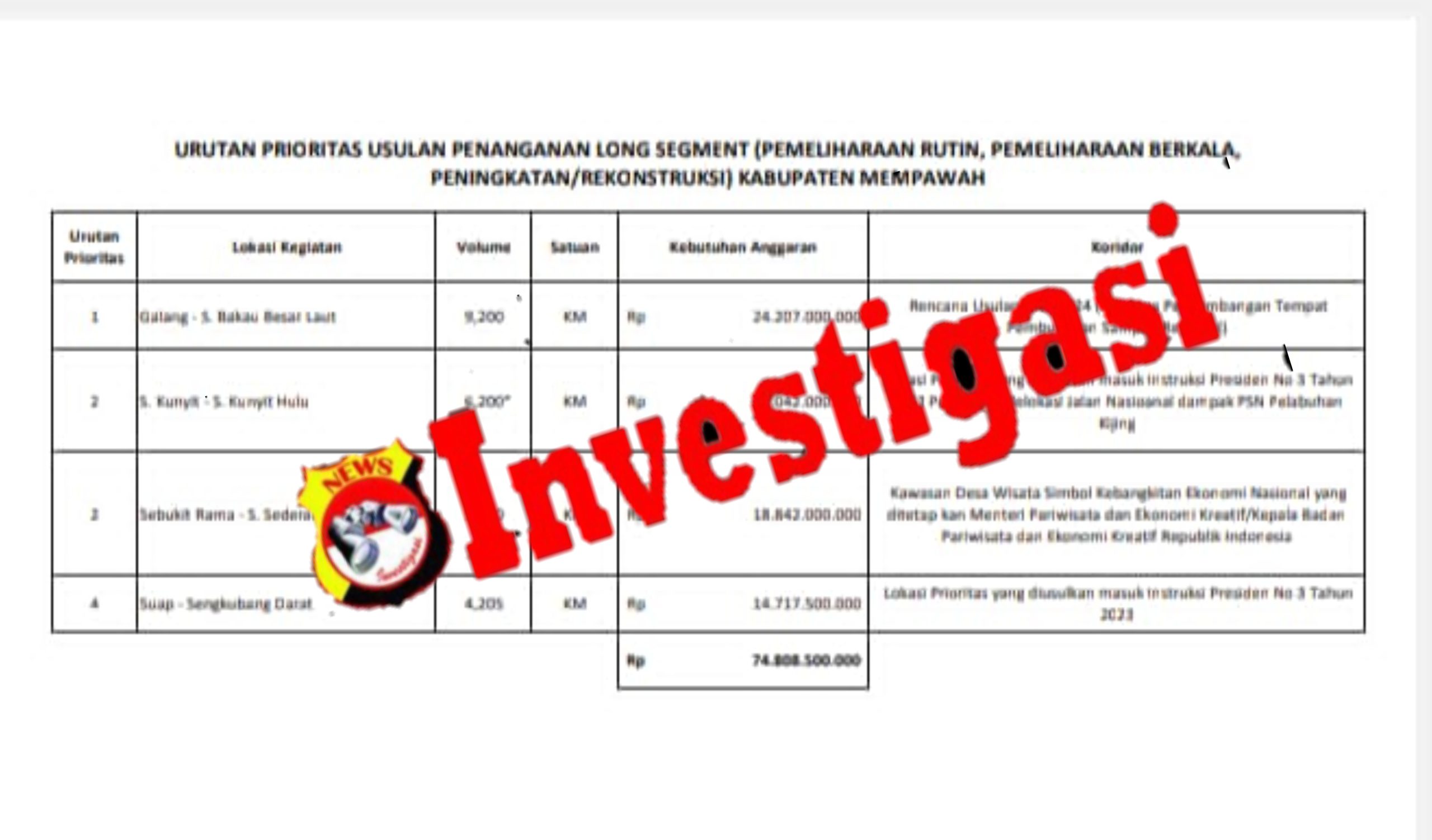 Mengingat dana anggaran di Proyek Prioritas Usulan Penanganan Long Segment, cukup fantastis senilai Rp 74.808.500.000 menjadi sorotan publik, karena berpotensi terjadi penyimpangan dan bermasalah.