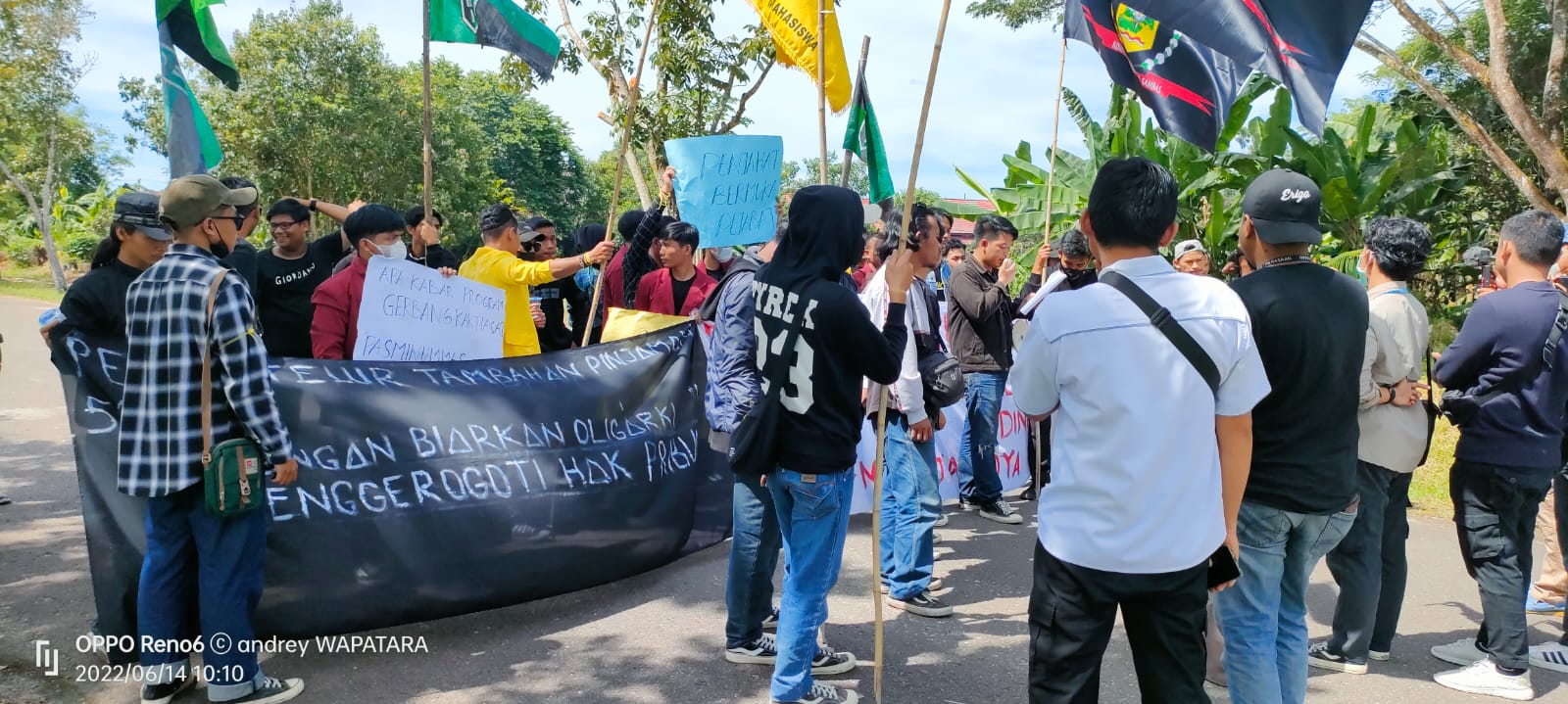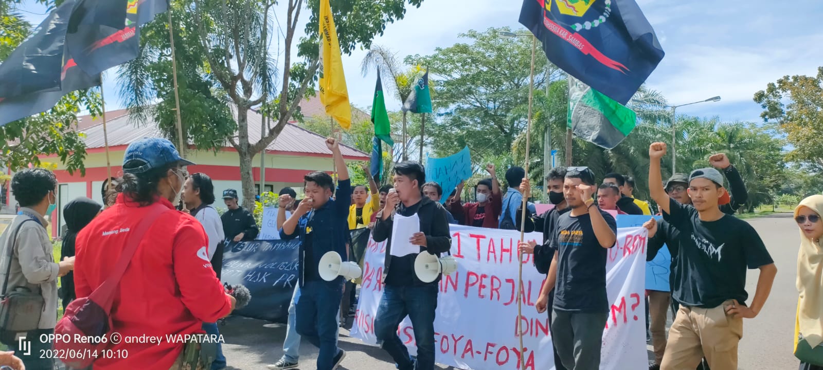 Selasa 14/06/2022, didepan Kantor Bupati Sambas, Aliansi mahasiswa Sambas bersatu lakukan demo untuk menyampaikan beberapa tuntutan yang menuntut adanya persetujuan dari Bupati dan Wakil Bupati Sambas.