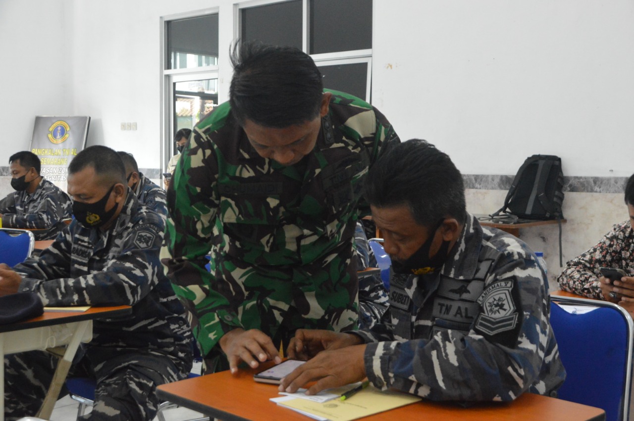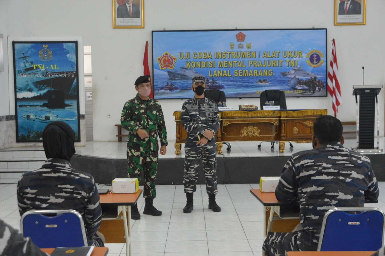 Komandan Pangkalan TNI Angkatan Laut (Danlanal) Semarang Kolonel Laut (P) Nazarudin, CHRMP., mendampingi Kepala Pusat Pembinaan Mental (Kapusbintal) TNI Laksma TNI Deri Triesananto Suhendi, SE., meninjau pelaksanaan Uji Coba Instrumen/Alat ukur Kondisi Mental Prajurit TNI Tahun 2021 bertempat di Gedung Mandalika Mako Lanal Semarang Jl Arteri Martadinata no 12 Semarang Barat yang diikuti oleh perwakilan prajurit Lanal Semarang. Rabu (13/10/2021).