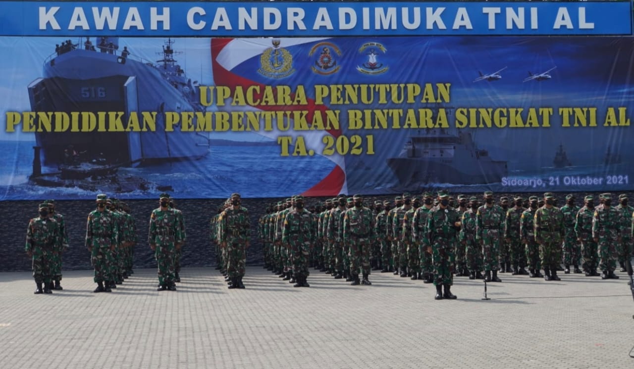 Pusat Latihan Pendidikian Dasar Kemiliteran (Puslatdiksarmil) Komando Pembinaan Doktrin Pendidikan dan Latihan TNI AL (Kodiklatal) kembali meluluskan program Pendidikan Pembentukan Bintara Singkat (Diktukbakat) TNI AL TA 2021. Penutupan Pendidikan yang dipimpin langsung Komandan Puslatdiksarmil (Danpuslatdiksarmil) Kodiklatal Kolonel Laut (P) Johanes Djanarko Wibowo tersebut dilaksanakan di lapangan Kawah Candradimuka Puslatdiksarmil Kodiklatal yang berlokasi di Juanda Sidoarjo, Jumat, (22/10/2021).