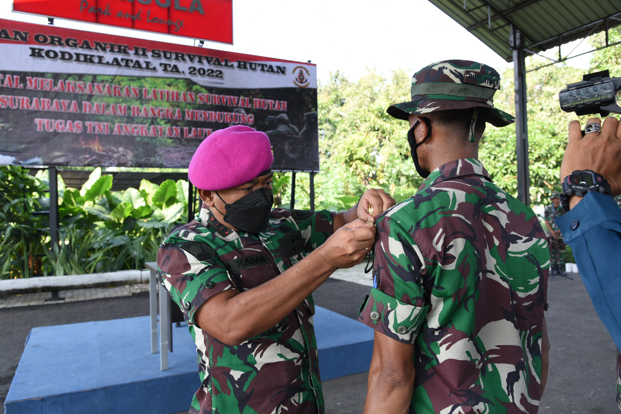 Pelaksanaan Latihan Organik II Survival Hutan ditandai dengan penyematan pita latihan oleh Danpuslatmar kepada perwakilan peserta. Latihan yang diikuti 87 peserta terdiri 80 orang pelaku dan 7 orang penyelenggara latihan. Ini dilaksanakan dari tanggal 20-29 Juni 2022. Peserta Latihan berasal dari beberapa Puslat dan Kodik di jajaran Kodiklatal. Sementara itu materi yang akan dilatihkan antara lain, pengetahuan tentang cara bertahan hidup di hutan dengan lokasi latihan di wilayah Surabaya dan sekitarnya.