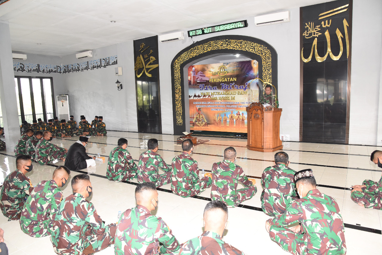 Resimen Taruna Akademi Angkatan Laut (AAL) menggelar Peringatah Isro Mi’raj Nabi Muhammad SAW 1442 H/2021 yang dihelat di Masjid Nurul Bahri Kesatrian AAL Bumimoro, Surabaya, Kamis (18/3).