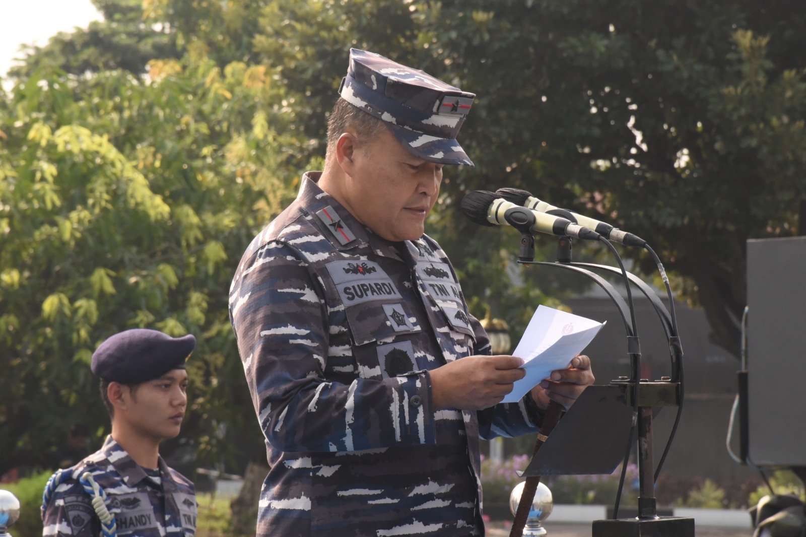 Komandan Pangkalan Utama TNI AL (Danlantamal) V Laksamana Pertama TNI Supardi Memimpin Apel Khusus dalam rangka menyambut Bulan Suci Ramadhan 1444 Hijriyah Tahun 2023 di Lapangan Apel Mako Lantamal V Perak, Surabaya. Jumat (24/03/2023).