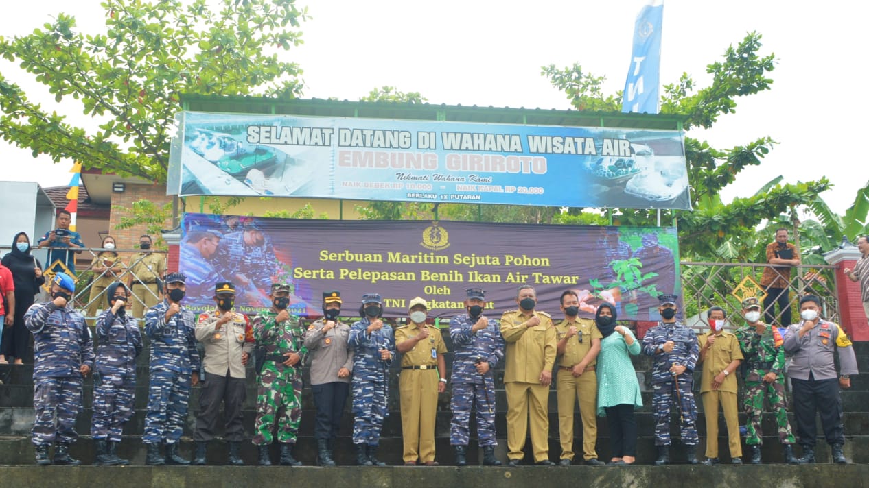 Komandan Pangkalan TNI Angkatan Laut (Danlanal) Semarang Kolonel Laut (P) Nazarudin CHRMP., mendampingi Komandan Pangkalan Utama TNI Angkatan Laut (Danlantamal) V Laksma TNI Yoos Suryono Hadi, M.Tr.(Han)., M.Tr.Opsla., CHRMP., melaksanakan Serbuan Maritim Sejuta Pohon dan Penebaran Ikan Nila dalam rangka Hari Maritim yang ke-76 tahun 2021, yang mengambil tempat di Desa Giriroto Kecamatan Ngemplak Kabupaten Boyolali Jawa Tengah. Selasa (16/11/2021).