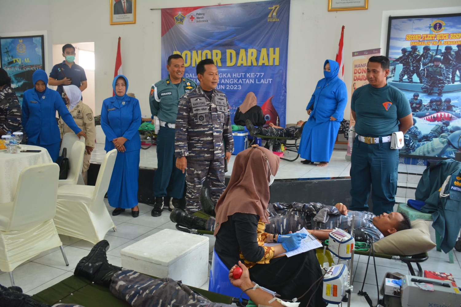 Dentasemen Polisi Militer Angkatan Laut (Pomal) Pangkalan TNI AL (Lanal ) Semarang, menggelar Donor Darah dalam rangka peringatan Hari Ulang Tahun (HUT) Pomal ke-77. Aksi donor darah digelar dalam memperingati HUT dengan mengambil Tema “Setetes Darah Kita Bermanfaat Bagi Mereka” . Selasa (24/01/23)