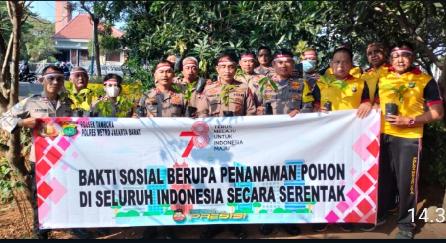 Dalam rangka Memperbaiki Kualitas udara, pada peringatan HUT ke-78 Kemerdekaan Republik Indonesia, Polres Metro Jakarta Barat dan jajaran melaksanakan Gerakan Nasional dalam rangka mensyukuri hari kemerdekaan bangsa Indonesia dengan melaksanakan aksi nyata dengan melakukan penanaman 15 ribu pohon serentak di wilayah hukum Polres Metro Jakarta Barat, Jum’at, 18/8/2023.