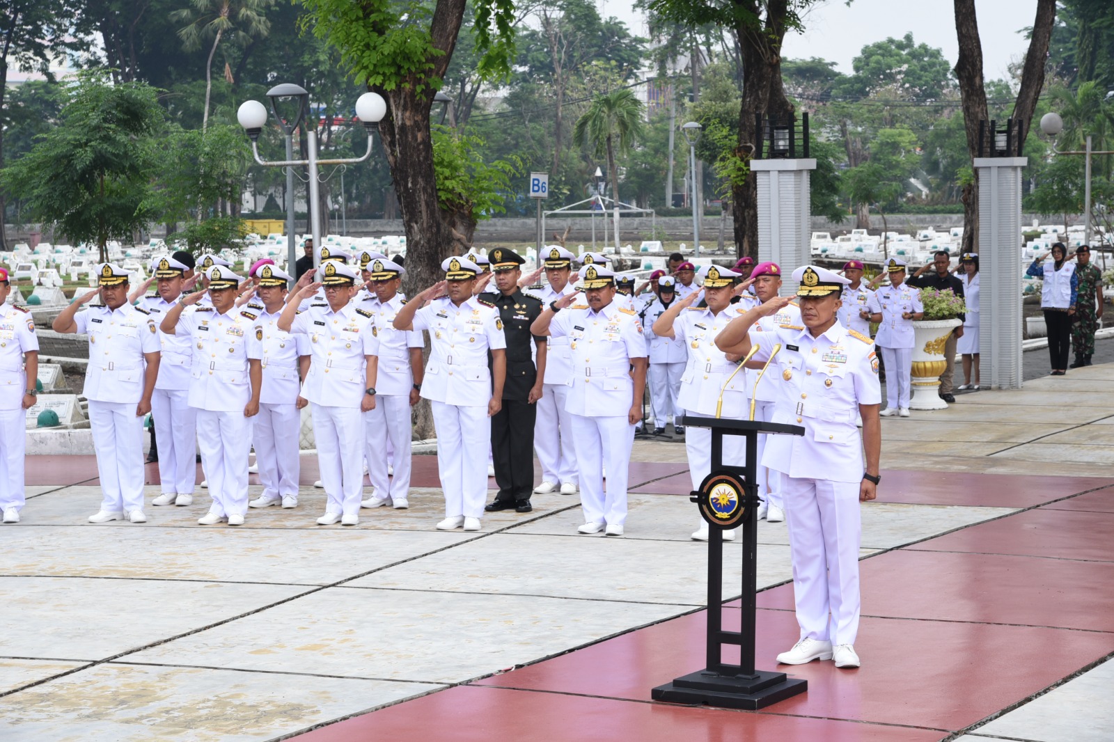 Dalam rangka menyambut Hari Armada RepubIik Indonesia Ke – 78 Tahun 2023, Komandan Kodikmar (Dankodikmar) Kodiklatal Brigjen TNI Marinir Samson Sitohang melaksanakan ziarah nasional yang dipimpin oleh Kaskoarmada II, Laksamana Pertama TNI Isswarto selaku Inspektur Upacara (Irup), bertempat di Taman Makam Pahlawan (TMP) Sepuluh Nopember, Jl. Mayjen Sungkono No. 190 Kota Surabaya. Senin (04/12/2023).