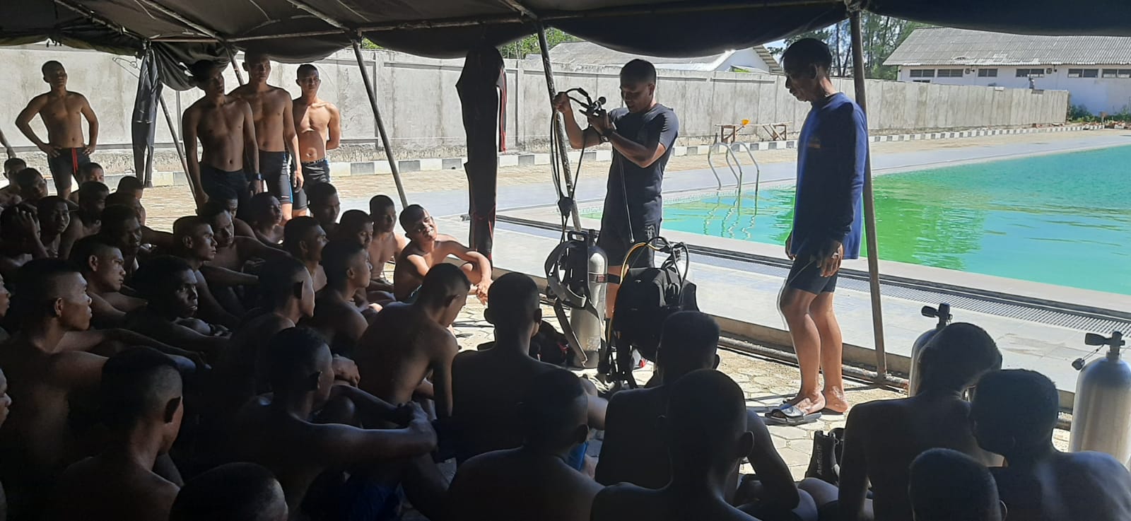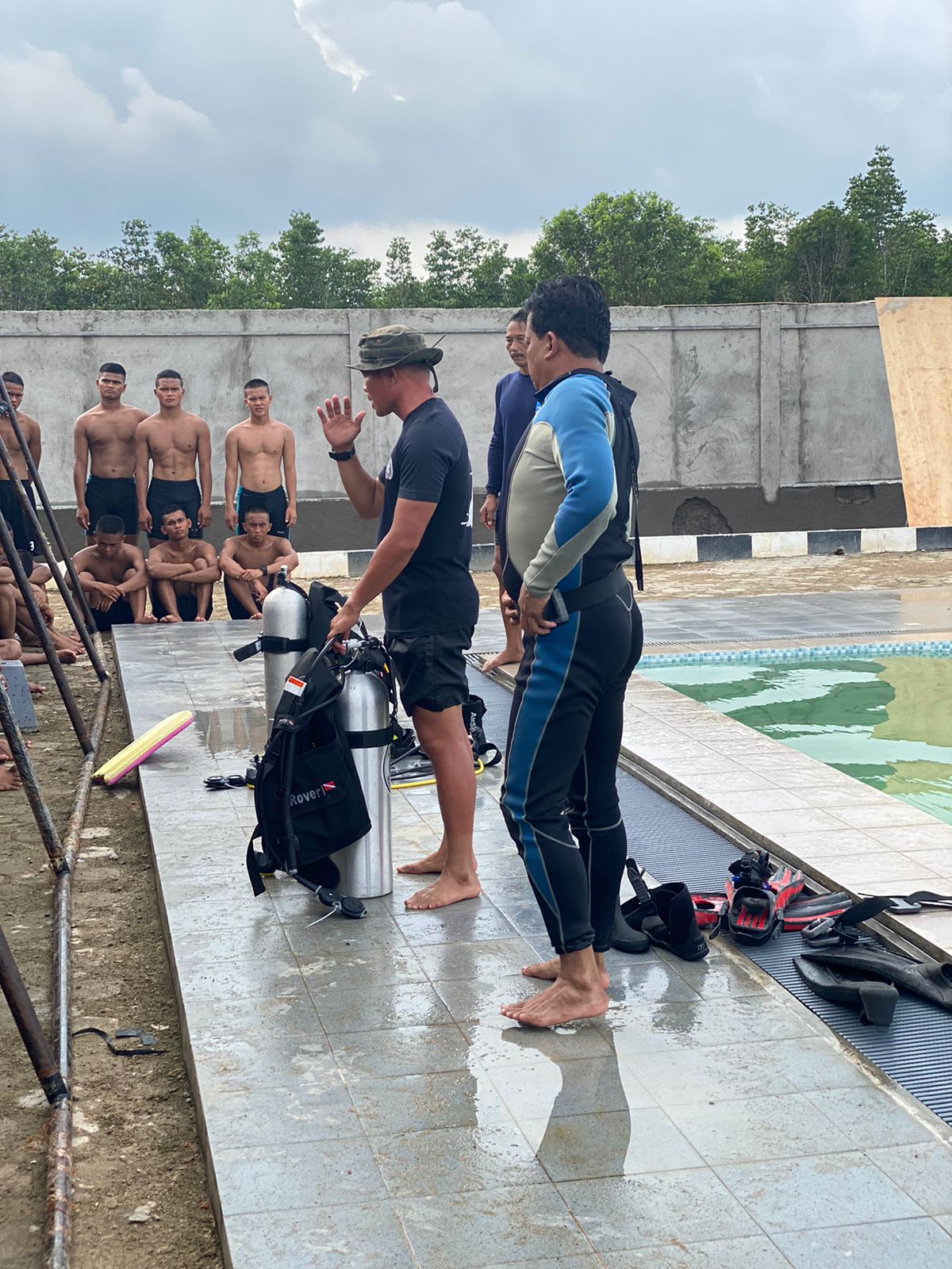 Sebanyak 245 Prajurit Siswa Satuan Pendidikan (Satdik) 1 Tajung Uban, Komando Pembinaan Doktrin, Pendidikan dan Latihan TNI AL (Kodiklatal) mengikuti pelatihan menyelam scuba (scuba diver) di Kolam renang Tirto Segoro Fasilitas Pemeliharaan dan Perbaikan (Fasharkan) Mentigi, Tanjung Uban, Rabu (13/10).