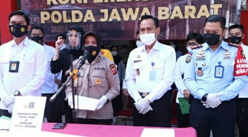 Kasubdit I Ditreskrimsus Polda Jabar AKBP Andry Agustiano didampingi Kasubbid Penmas Bid Humas Polda Jabar AKBP Dra. Santi Gunarni saat melaksanakan Konferensi Pers di Rupbasan, Jl. Pacuan Kuda Bandung mengungkapkan, Praktek pengoplosan gas 12 Kg tersebut sudah berjalan selama satu tahun yang di lakoni pria asal bogor berinisial KPH, Rabu (16/6/2021)