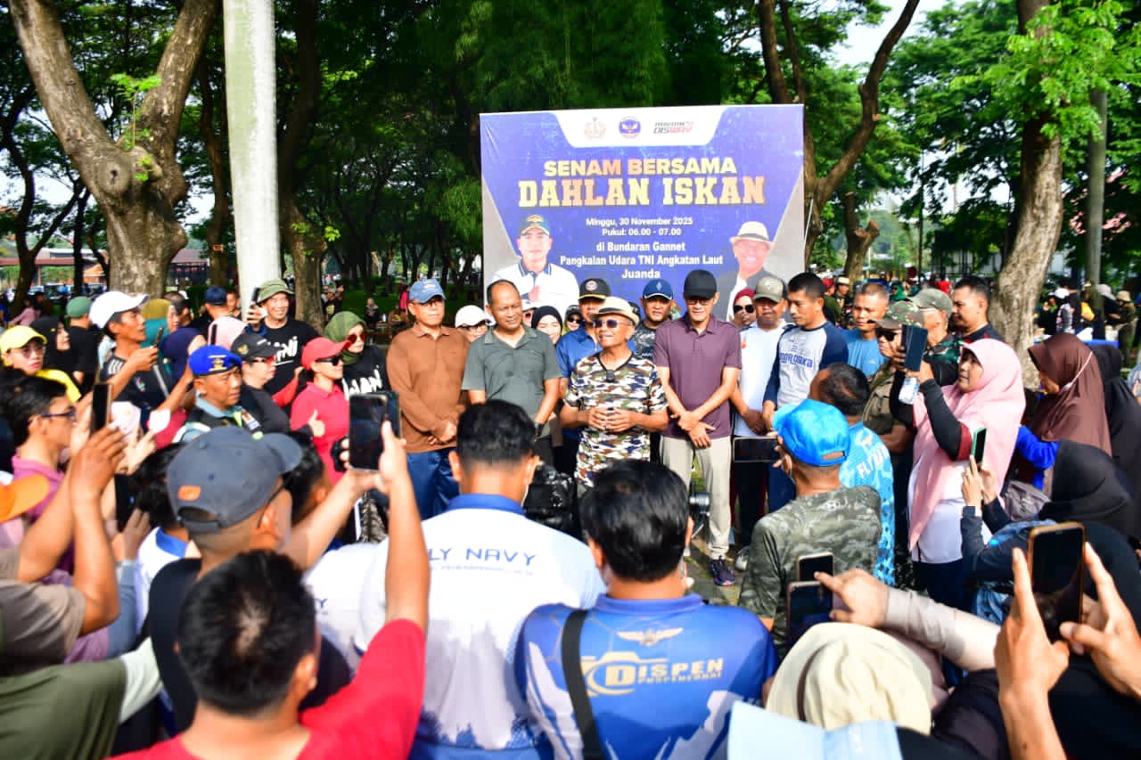 Para pejabat dari Pusat Penerbangan TNl Angkatan Laut (Puspenerbal) tampak hadir mewakili Komandan Puspenerbal, Laksda TNl Bayu Alisyahbana menyambut dan berolahraga bersama Komunitas Senam Dahlan Iskan ini.