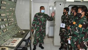Dalam rangka pengenalan alut sista TNI Agkatan Laut, Siswa Pendidikan Pertama Bintara (Dikmaba) TNI Angkatan Laut Angkatan XL/1 yang sedang menempuh pendidikan di Pusat Latihan Pendidikan Dasar Militer (Puslatdiksarmil) Komando Pembinaan Doktrin Pendidikan dan Latihan TNI Angkatan Laut (Kodiklatal) menggelar Lattek di Simulator Pusat Latihan Elektronika dan Sistem Kendali Senjata (Puslatlekdalsen) Kodiklatal Bumimoro, Surabaya, Rabu, (24/3/2021).