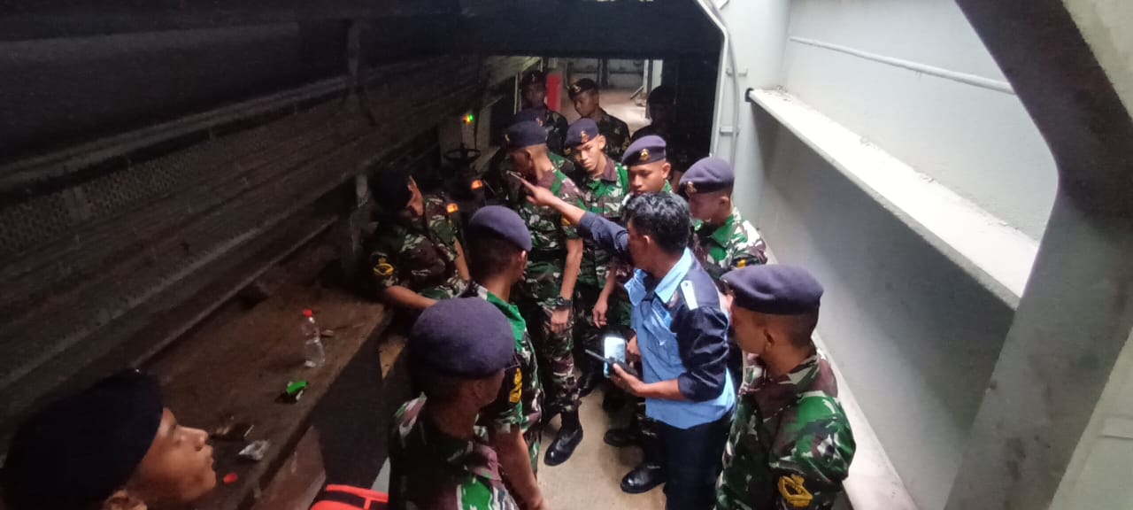 Sebanyak 37 prajurit siswa Pendidikan Pertama Bintara (Dikmaba) TNI AL Angkatan 41/2 Kejuruan Mesin Pusat Pendidikan Teknik (Pusdiktek) Kodiklatal, mengikuti Lattek Docking dan Galangan Kapal di Fasilitas Pemeliharaan dan Perbaikan (Fasharkan) Pangkalan Utama TNI AL (Lantamal) V Surabaya, Kamis (14/7/2022).