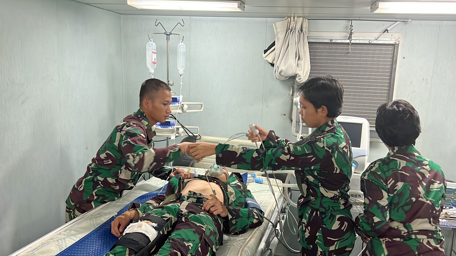 Tiba di helipad KRI dr. Soeharso-990, Tim Medis Siswa Susgakes Dikmapa PK XXIX B sudah siap menjemput dan segera membawa pasien ke ruang IGD untuk dilakukan pemeriksaan triase dan penanganan patah tulang beserta penanganan Syok Hipovolomi, karena Massive Haemoragic. Tim Medis pun selanjutnya memutuskan untuk memindahkan si pasien ke ICU karena kondisinya yang tidak stabil. Setelah mendapat penanganan intensif tim medis, kondisi pasien menjadi stabil dan dipindahkan ke ruang perawatan KRI Soeharso – 990.