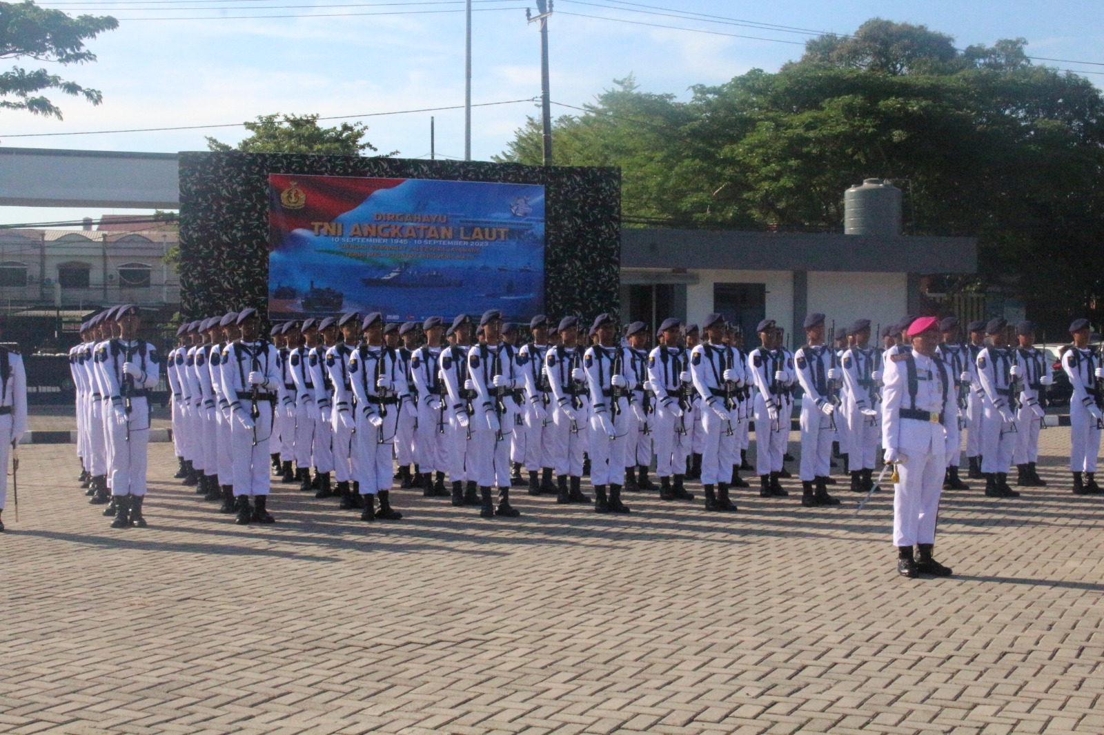 Siswa Dikmaba dan Dikmata Angkatan XLIII TA 2023 dari Satuan Pendidikan (Satdik)-2 Komando Pembinaan Doktrin Pendidikan dan Latihan TNI AL (Dankodiklatal) yang berlokasi di Makassar, dengan khidmat mengikuti upacara peringatan Hari Ulang Tahun ke-78 TNI AL tahun 2023, yang dipimpin oleh Komandan Satdik -2 Kolonel Laut (P) Teddy Barata, Senin (11/9/2023).