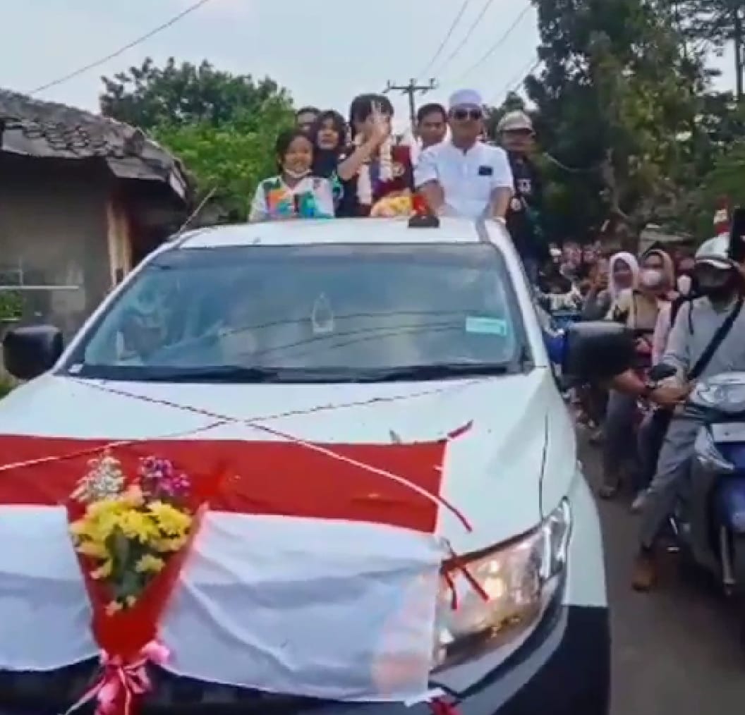 Atlet peraih medali emas Sea Games di Vietnam asal Desa Bantar Jati Kec. Klapanunggal Kabupaten Bogor, Siti Fadia Ramadanti disambut meriah bak seorang pahlawan saat tiba di daerah Klapanunggal dan puncak penyambutannya digelar di pelataran Kantor Desa Bantar Jati, Jumat 27/5/2022.