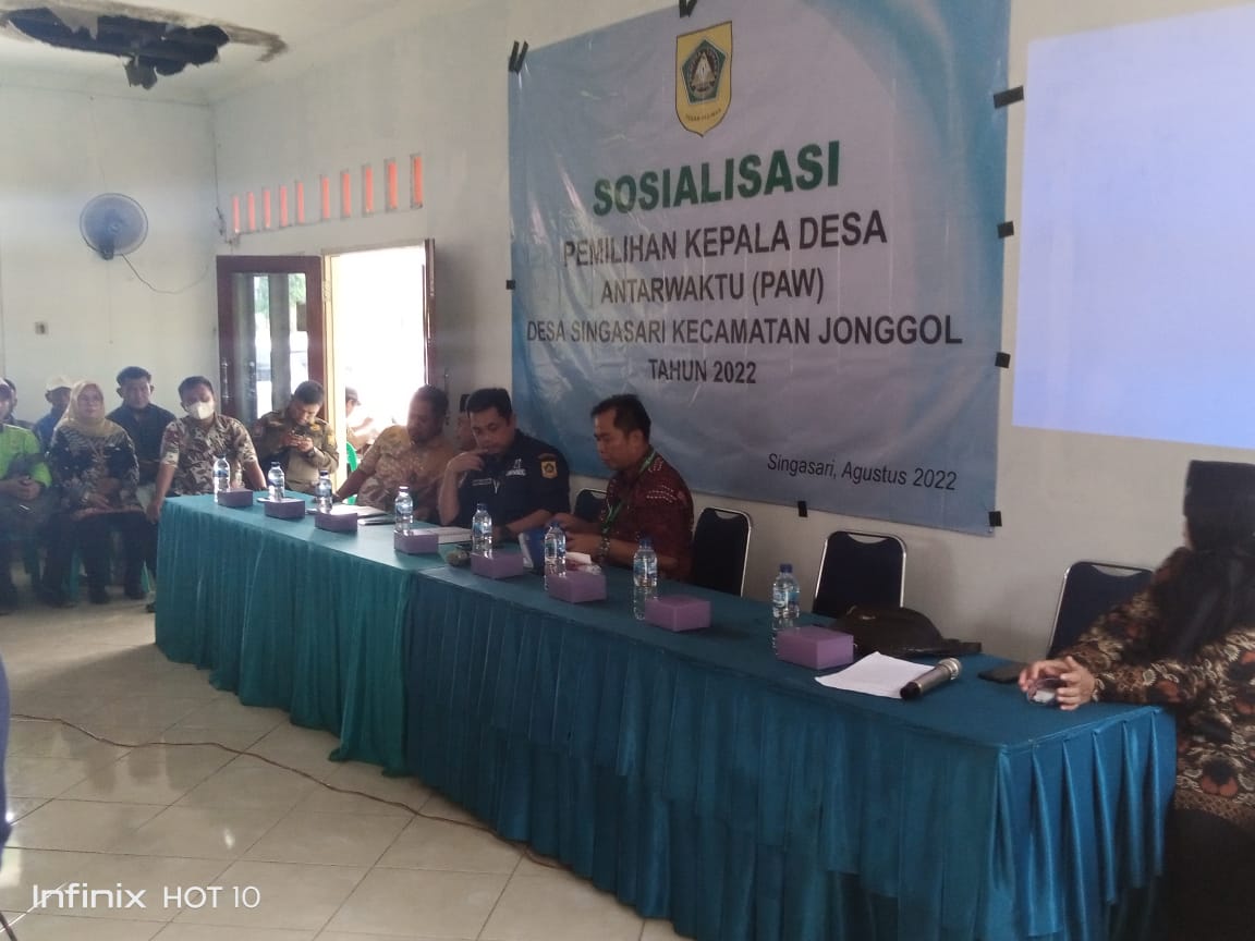 Bertempat di Aula Kantor Desa Singasari Jalan Cihaur Raya No 17 Jonggol.Pada hari Kamis tanggal 25 Agustus 2022 sekira pada pukul 14.00 Wib s. d 16.00 Wib telah dilaksanakan kegiatan Sosialisasi Pemilihan Kepala Desa Antar Waktu Desa Singasari Kecamatan Jonggol Kabupaten Bogor. Pemilihan Kepala desa antar waktu diadakan guna untuk mengisi kekosongan pejabat Kepala Desa dikarenakan Kepala desa terdahulu yakni I Sujan Cakra SE, meninggal dunia di karenakan sakit.
